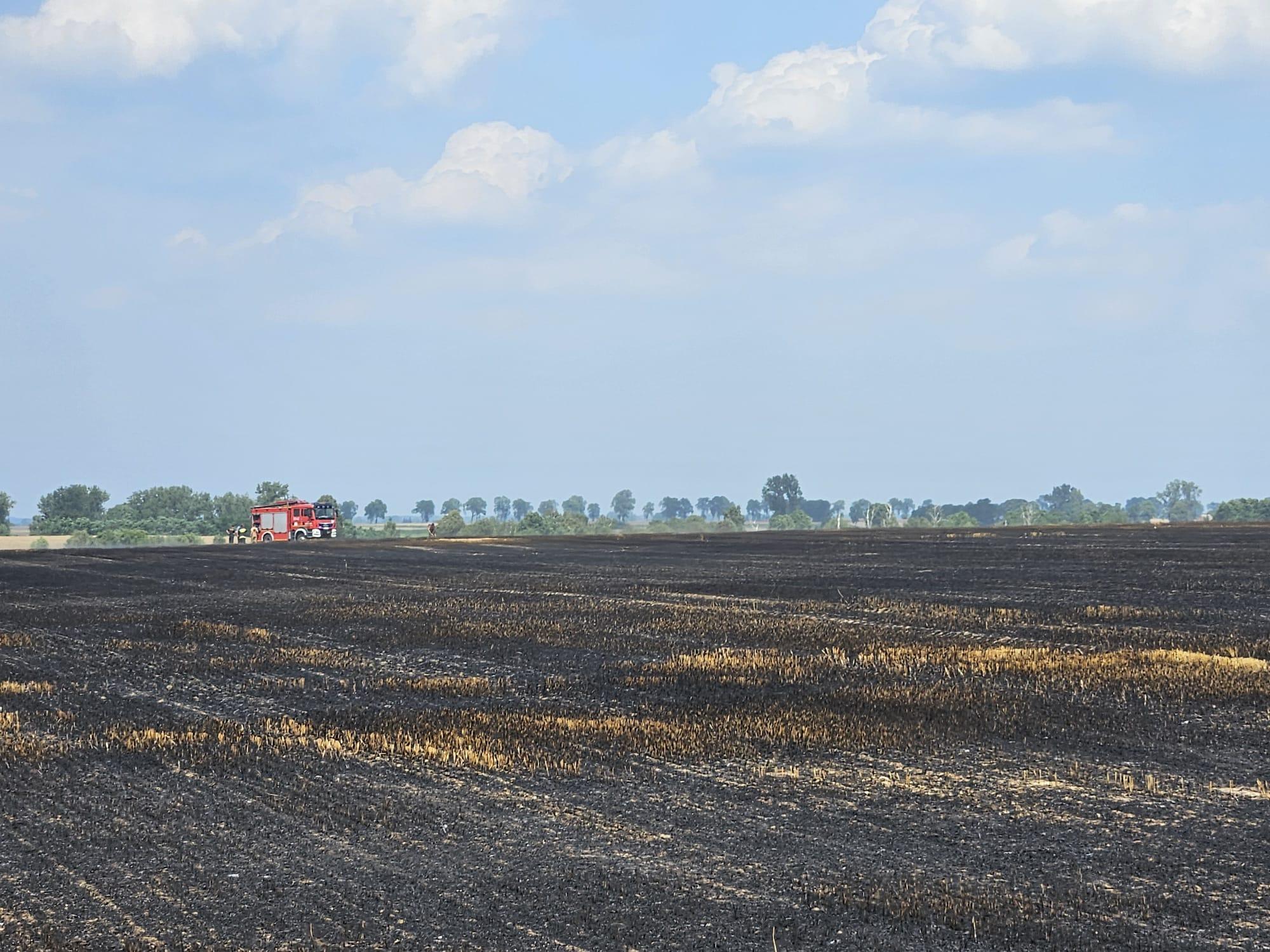 Po dojeździe na miejsce zdarzenia strażacy zastali pożar ścierniska na powierzchni ok. 4 hektarów, zagrożone były pobliskie pola ze zbożem na pniu.