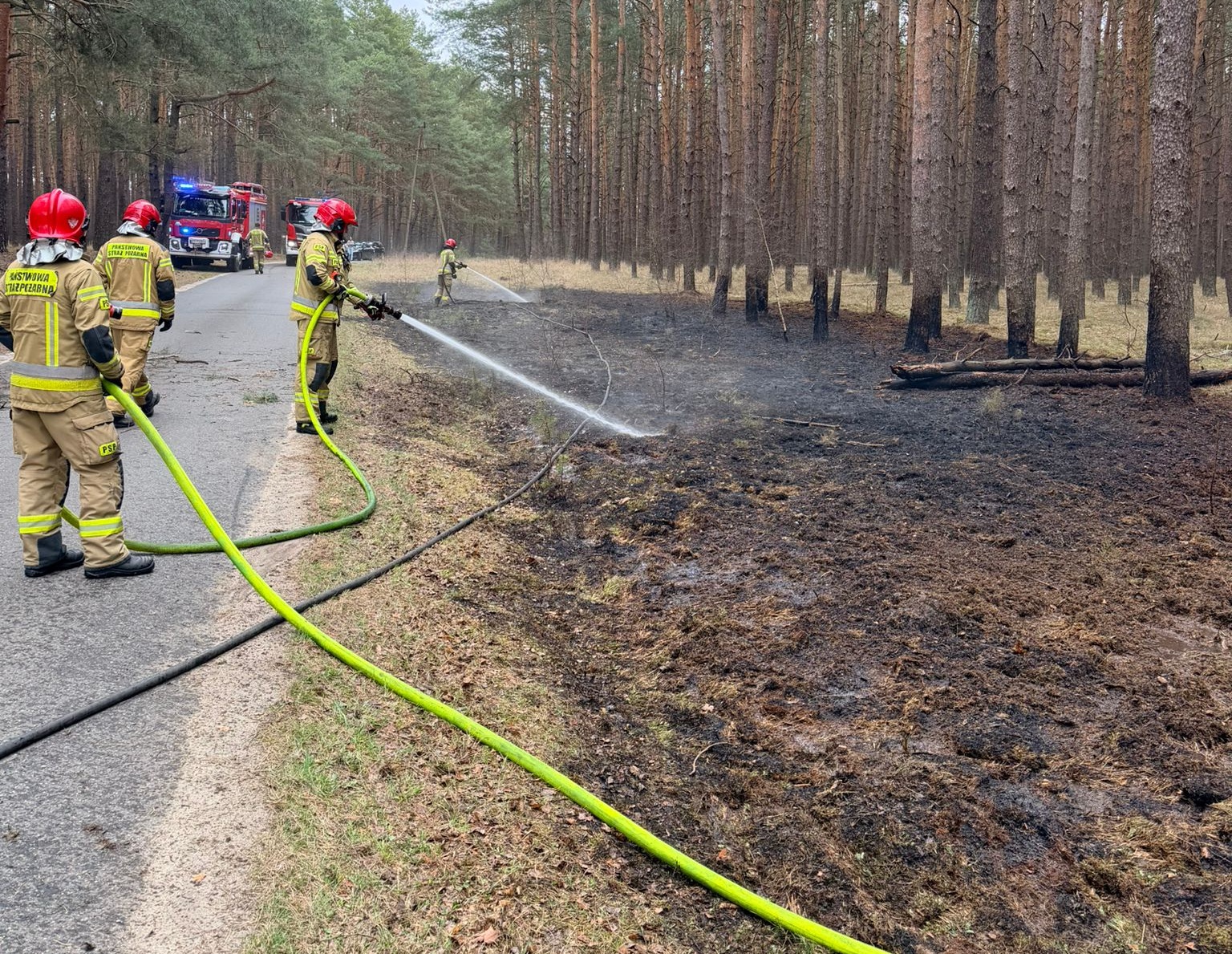 Po dojeździe na miejsce zdarzenia strażacy zastali pożar ściółki leśnej.