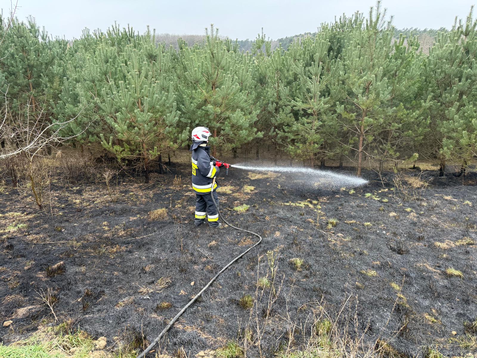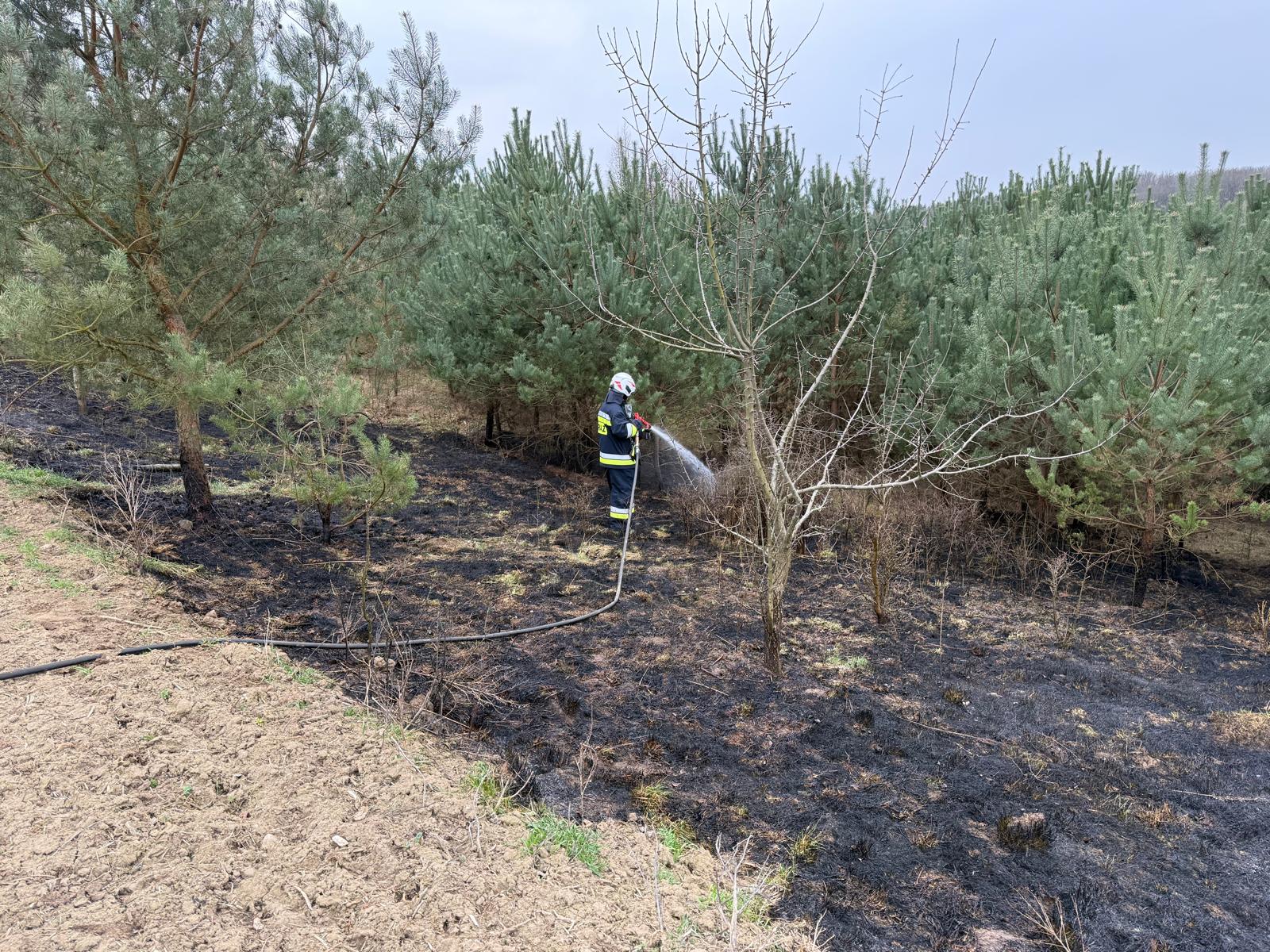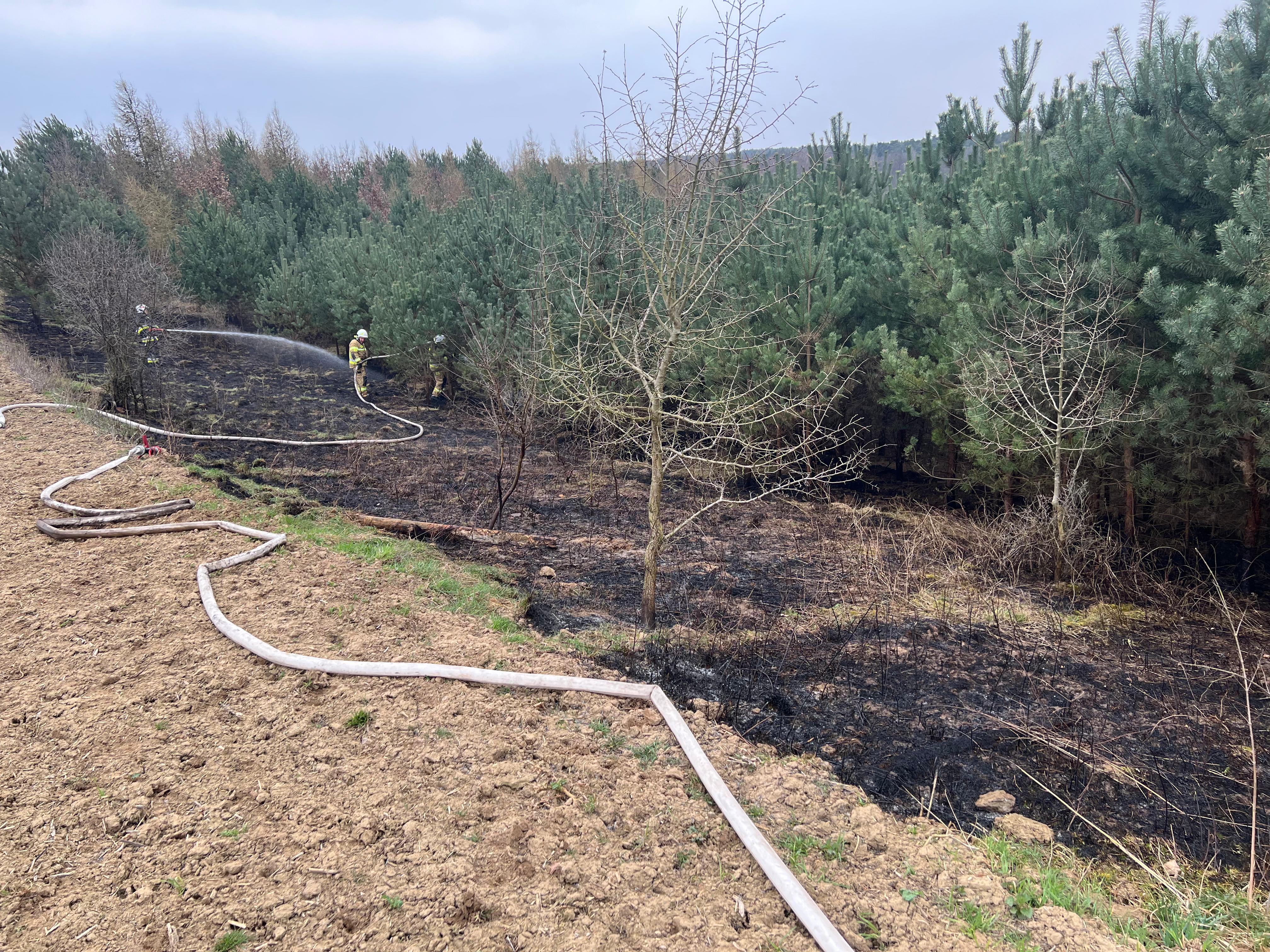 Po dojeździe na miejsce zdarzenia strażacy zastali pożar ściółki leśnej.