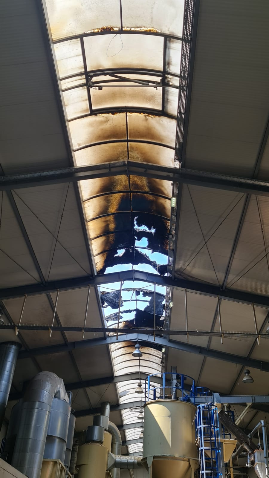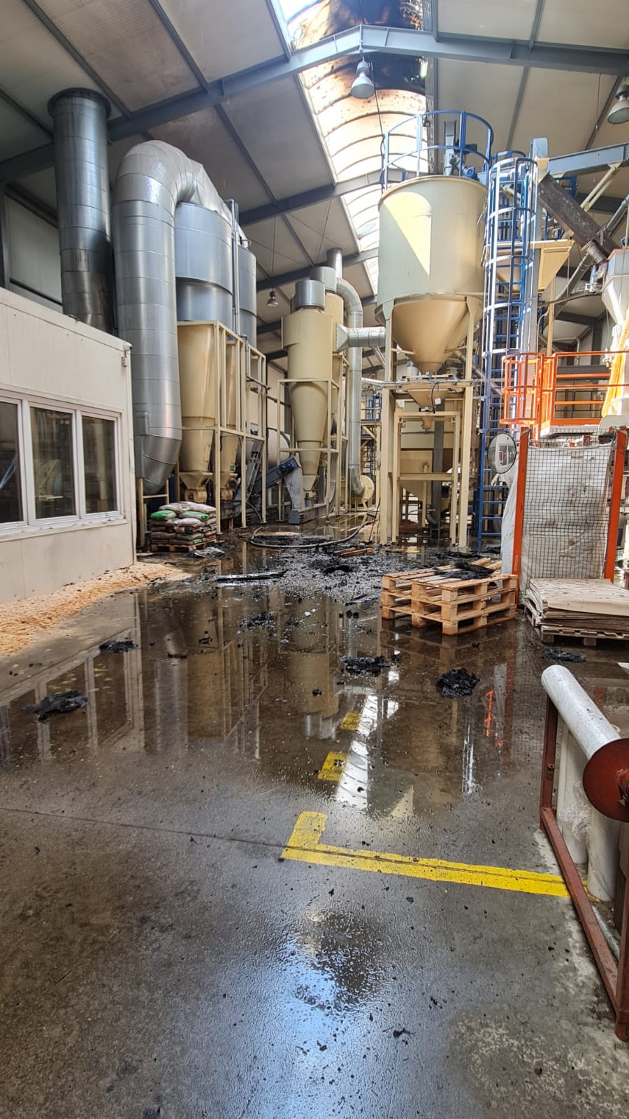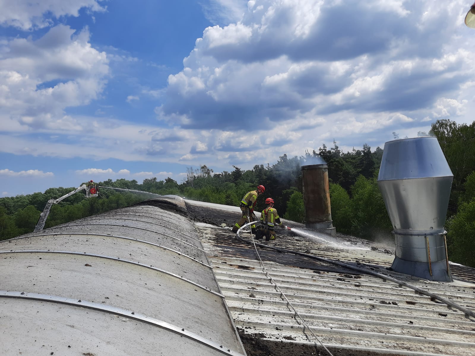 Po dojeździe na miejsce zdarzenia strażacy zastali duże zadymienie na terenie tartaku. W wyniku przeprowadzonego rozpoznania ustalono, że doszło do pożaru w przewodzie kominowym oraz świetlików na dachu.