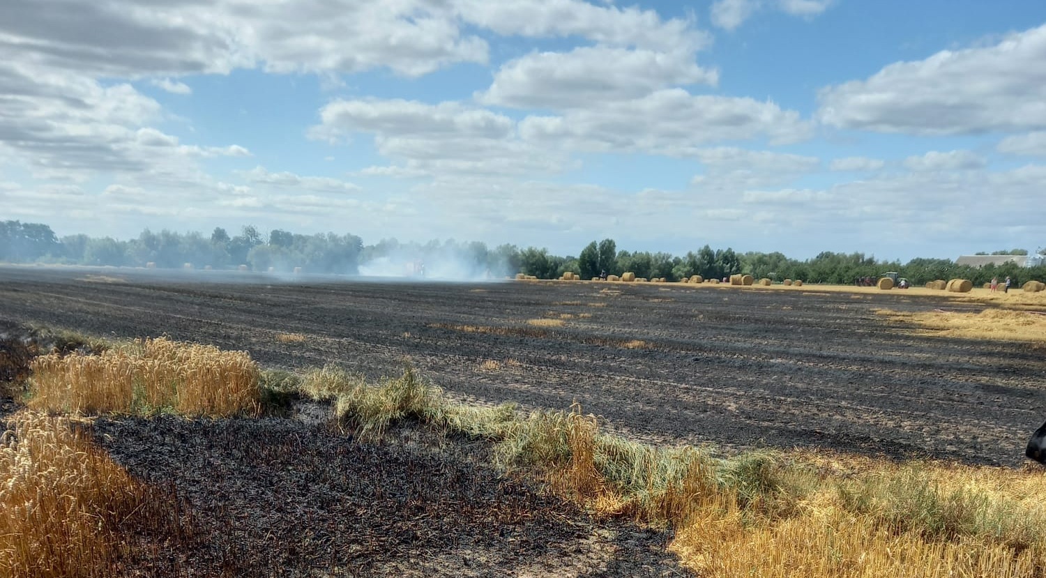 Po dojeździe na miejsce zdarzenia strażacy zastali pożar zboża na pniu oraz ściernisk.