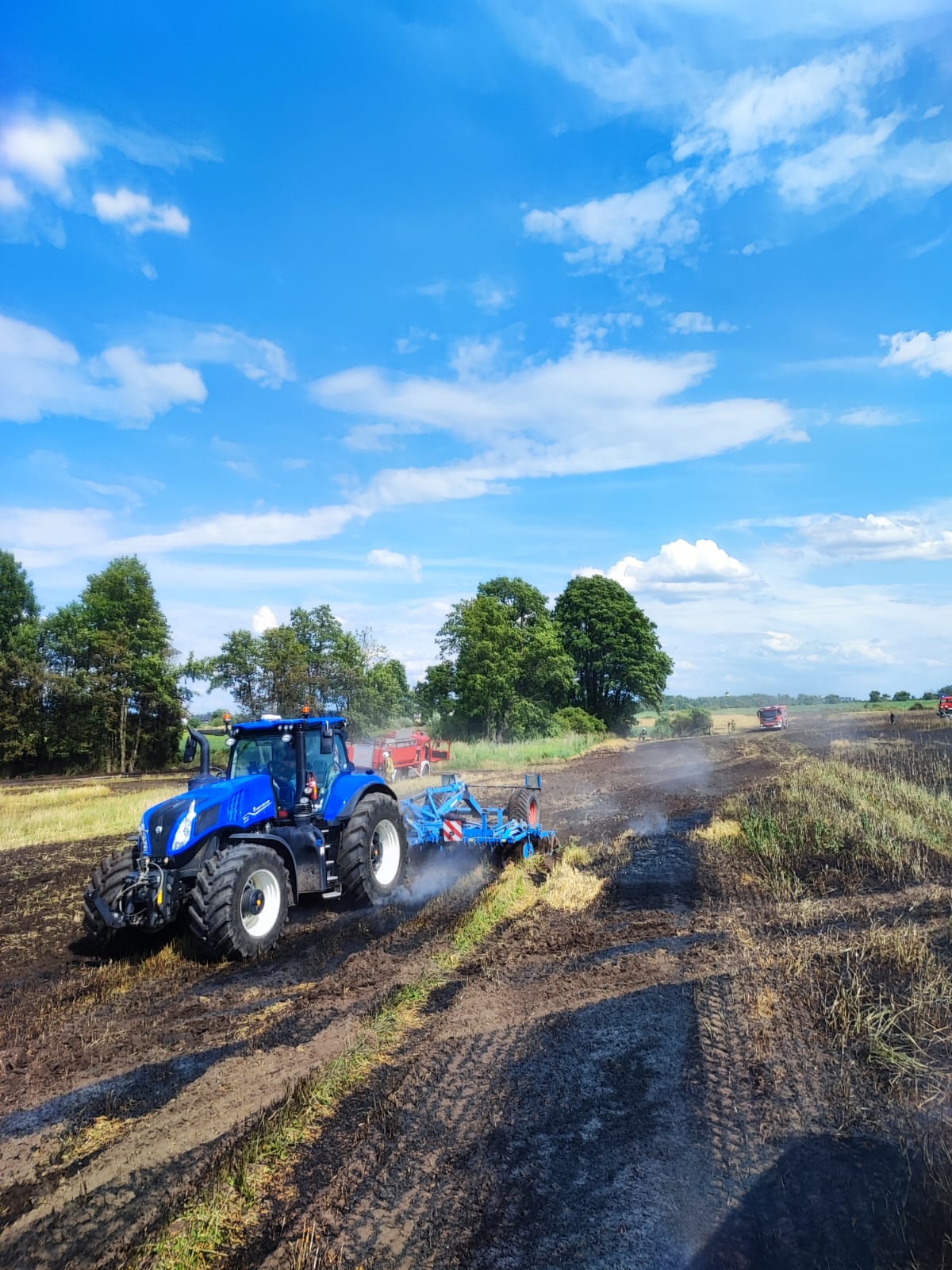 Na miejscu był właściciel i okoliczni rolnicy, którzy przystąpili do orania pola w celu zminimalizowania pożaru.