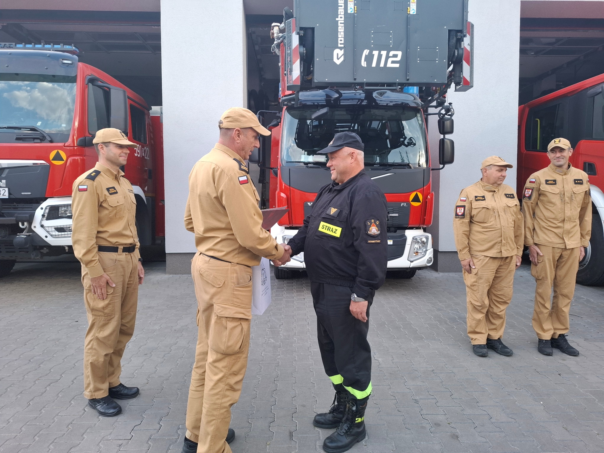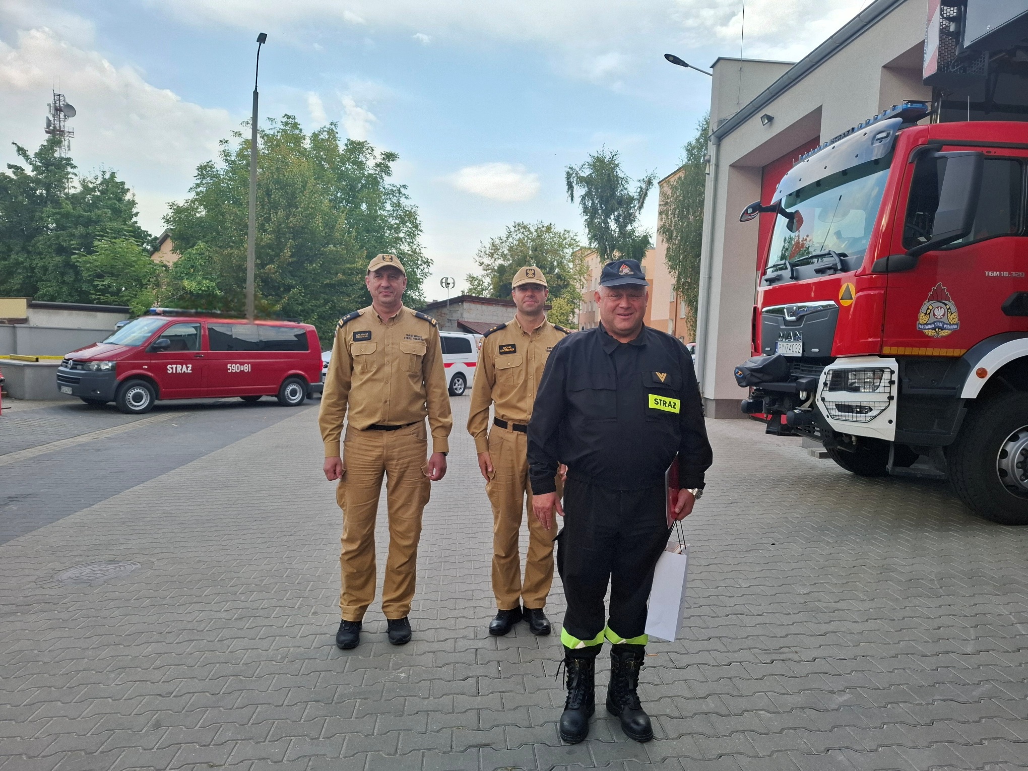 Podczas spotkania Zastępca Komendanta Powiatowego PSP w Szamotułach bryg. Arkadiusz Rakowski, Zastępca Dowódcy JRG Szamotuły mł. kpt. Michał Kaczmarek w obecności strażaków, podziękowali funkcjonariuszowi za wieloletnią służbę na rzecz ochrony przeciwpożarowej w tutejszej komendzie.