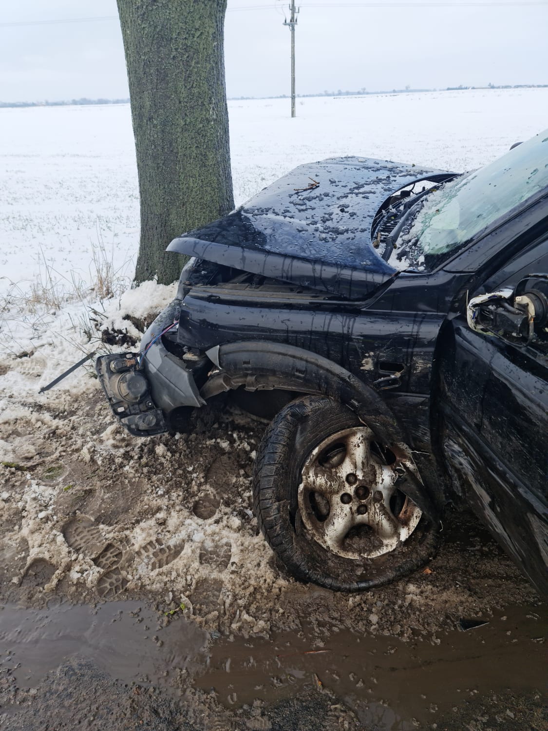Po dojeździe na miejsce zdarzenia strażacy zastali samochód osobowy, który otarł się o bok pojazdu ciężarowego, a następnie uderzył w drzewo. Dwie osoby poszkodowana znajdowały się wewnątrz samochodu osobowego, natomiast kierujący pojazdem ciężarowym znajdował się w pobliżu.