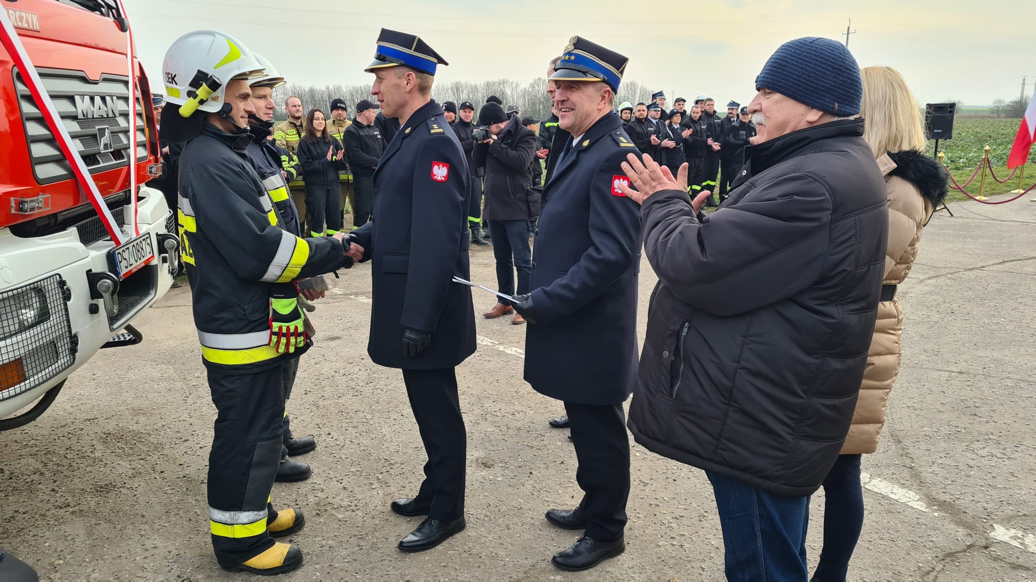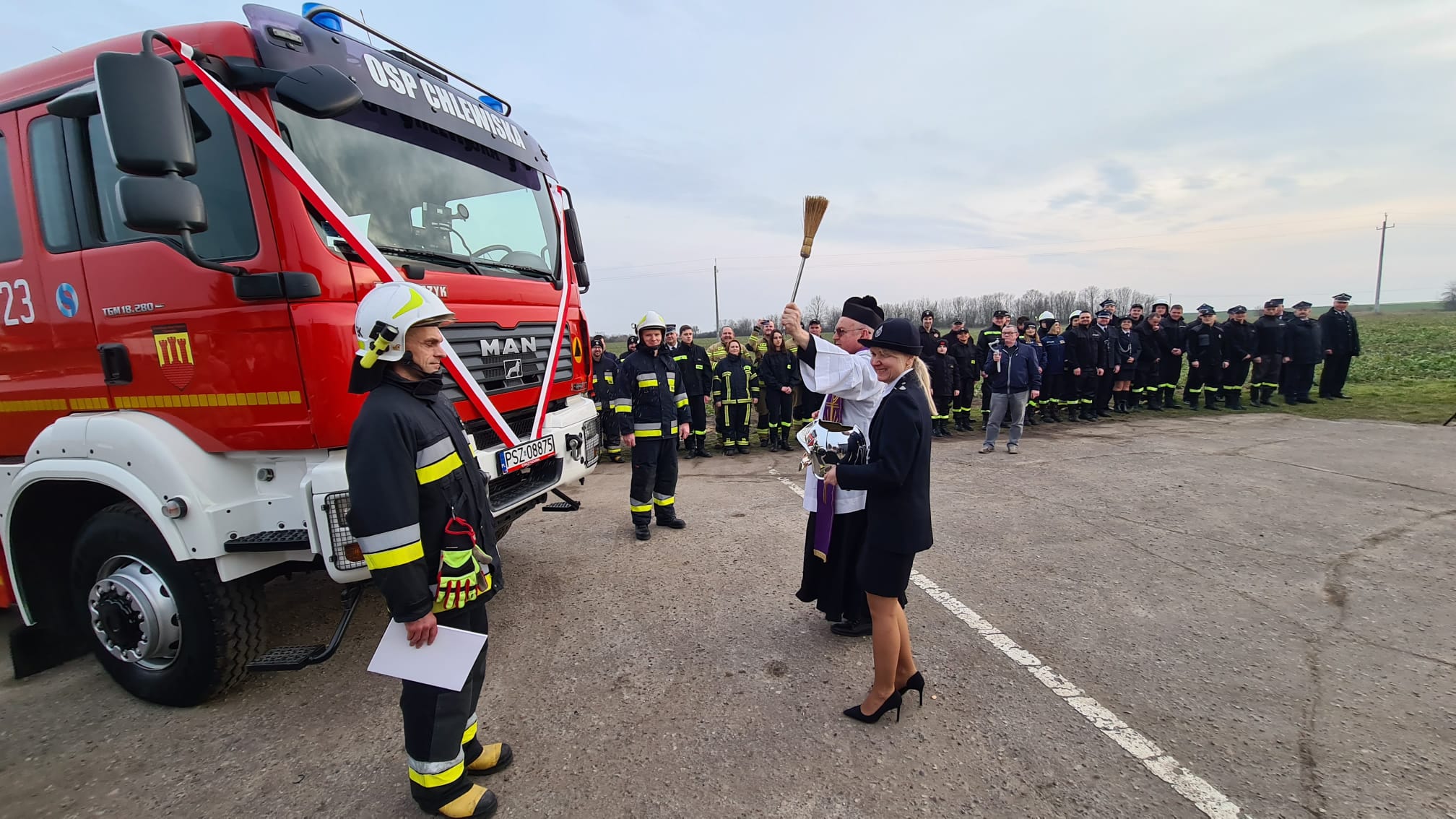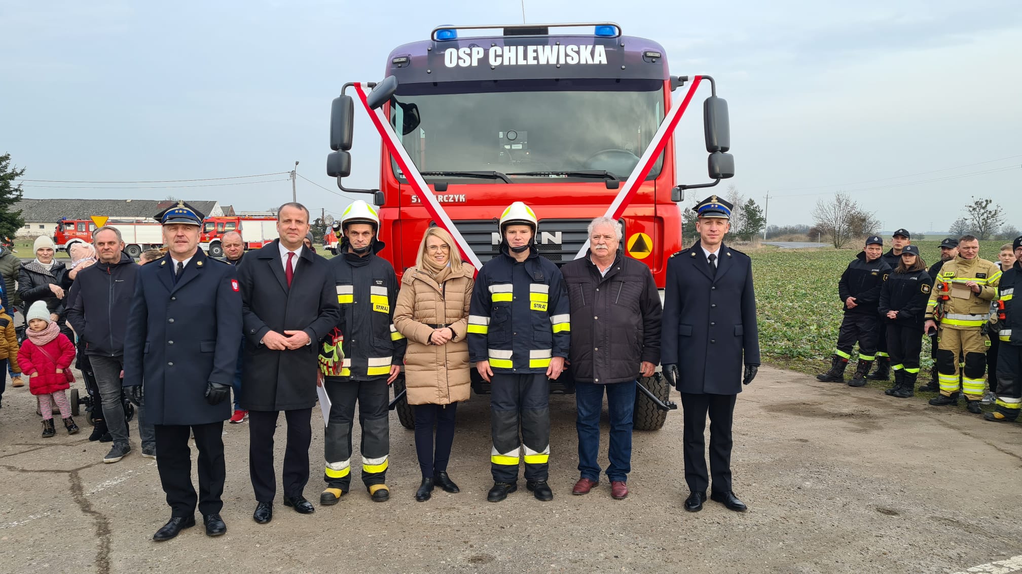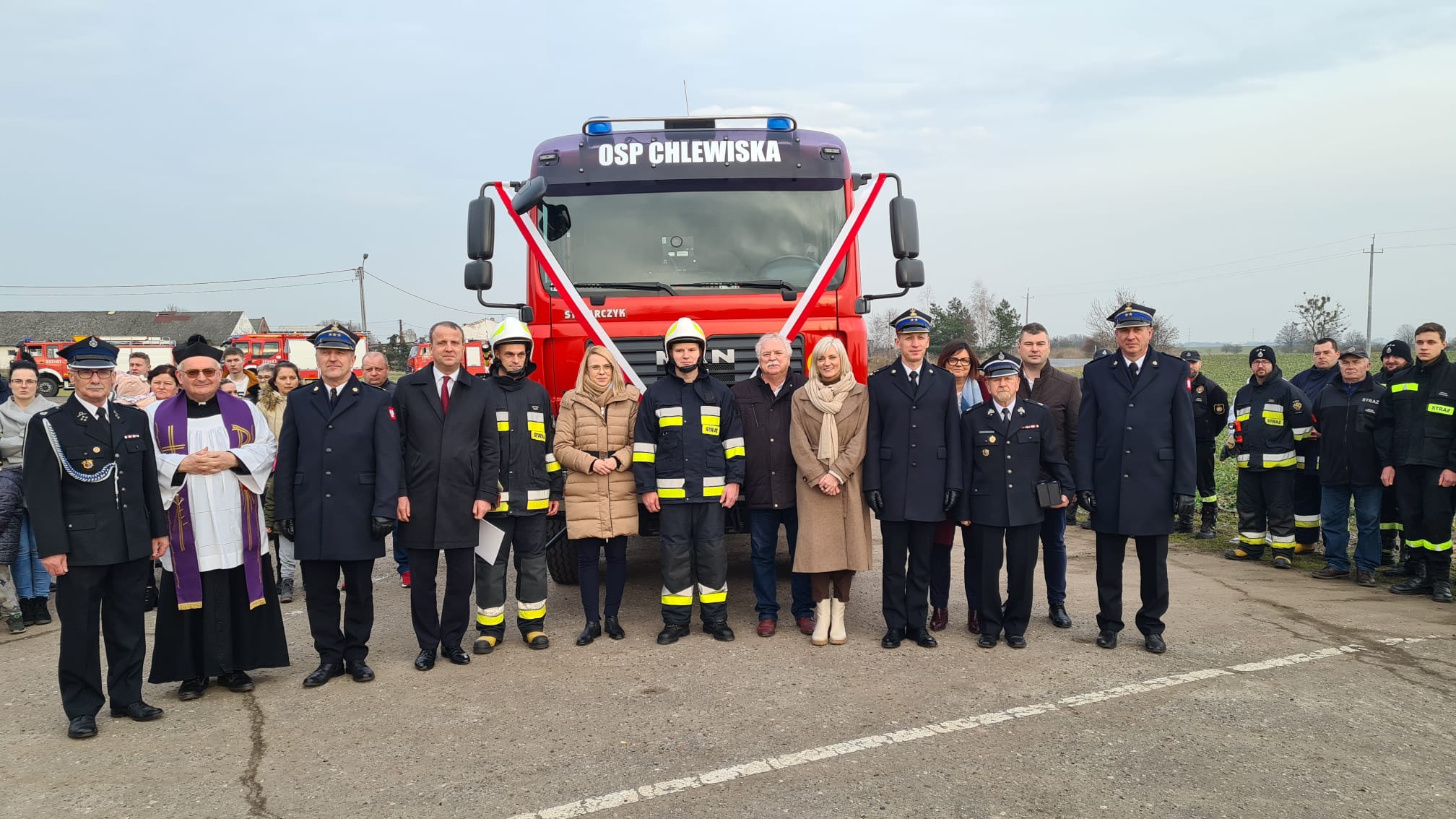 Po uroczystym przekazaniu kluczyków i dowodu rejestracyjnego do nowego wozu strażackiego przez Poseł na Sejm Panią Martę Kubiak, Wojewodę Wielkopolskiego Michała Zielińskiego, Zastępcę Wielkopolskiego Komendanta Wojewódzkiego Państwowej Straży Pożarnej w Poznaniu bryg. Tomasza Grelaka w asyście Komendanta Powiatowego PSP w Szamotułach st. bryg. Ireneusza Persa, ksiądz Krzysztof Musiał wygłosił stosowną na tę okoliczność modlitwę oraz poświęcił wóz strażacki. Podczas oficjalnej części uroczystości zaproszeni goście, gratulowali jednostce pozyskania samochodu oraz podkreślali profesjonalizm i ciągłą gotowość strażaków Ochotniczej Straży Pożarnej w Chlewiskach do niesienia pomocy potrzebującym.