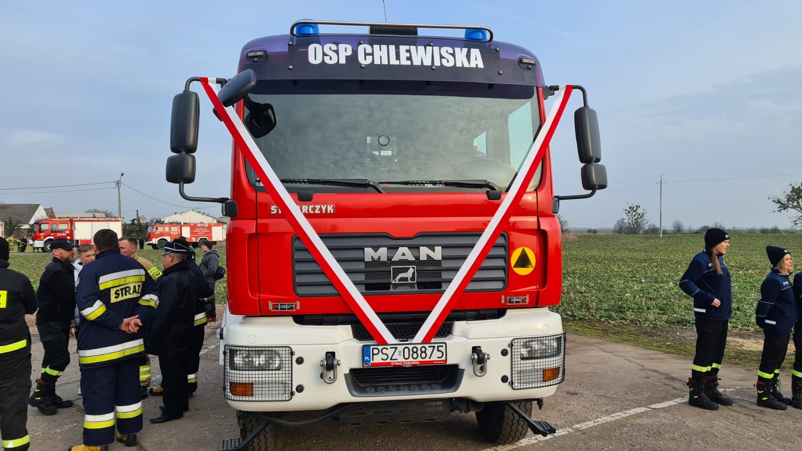 W czwartek, 23 lutego 2023 roku na placu przed remizą OSP Chlewiska odbyła się uroczystość przekazania ciężkiego samochodu ratowniczo – gaśniczego GCBA marki MAN, rocznik 2008 z Komendy Powiatowej PSP w Szamotułach dla Ochotniczej Straży Pożarnej w Chlewiskach gm. Kaźmierz.