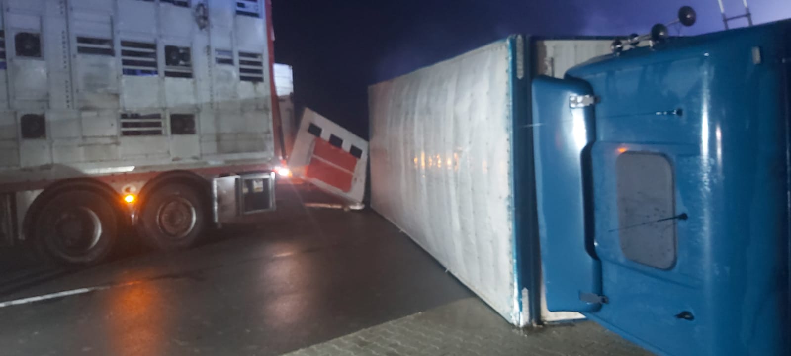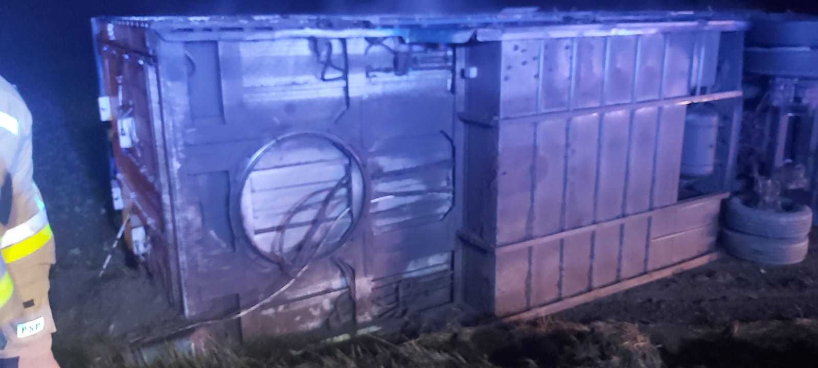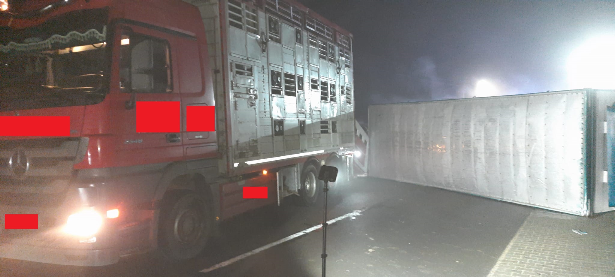 PRZEWRÓCONY SAMOCHÓD CIĘŻAROWY DO PRZEWOZU ZWIERZĄT