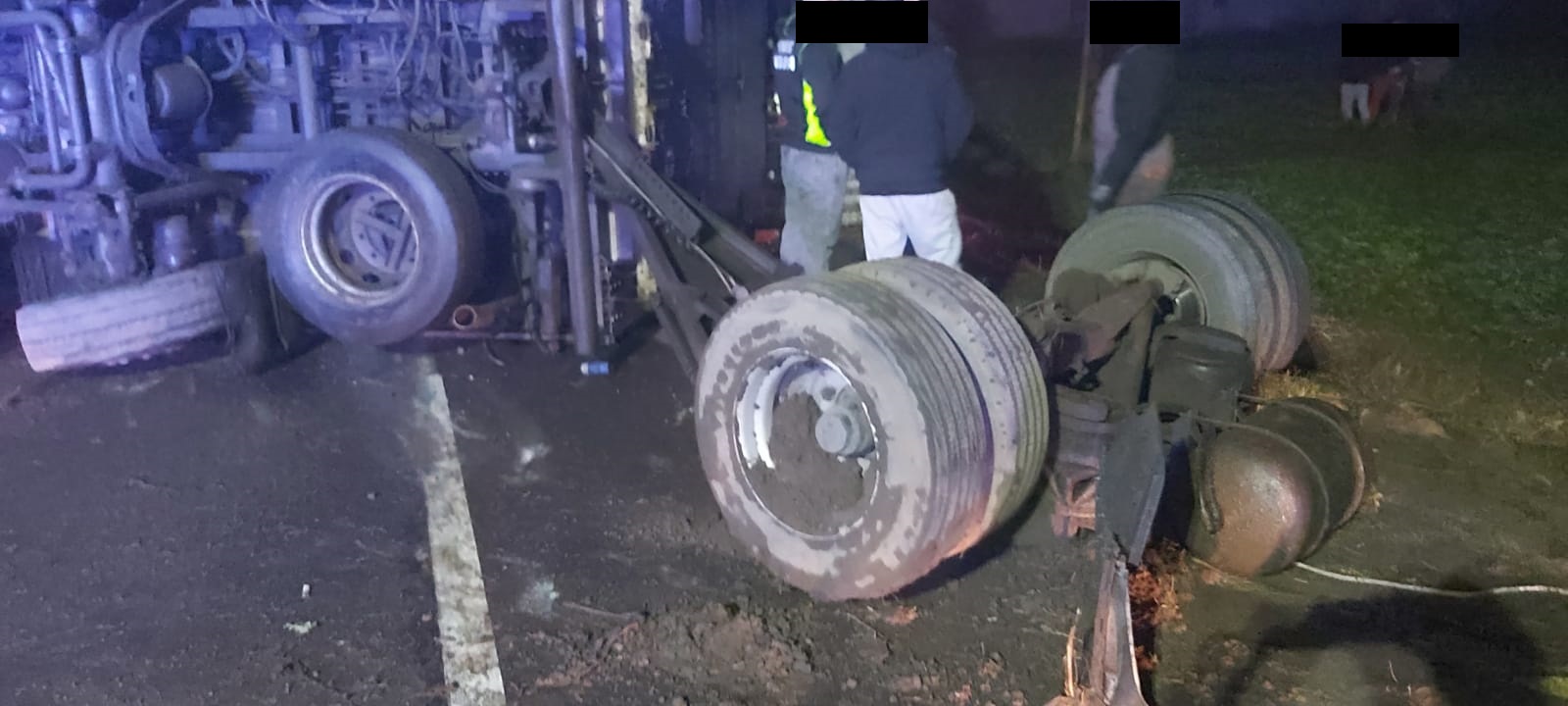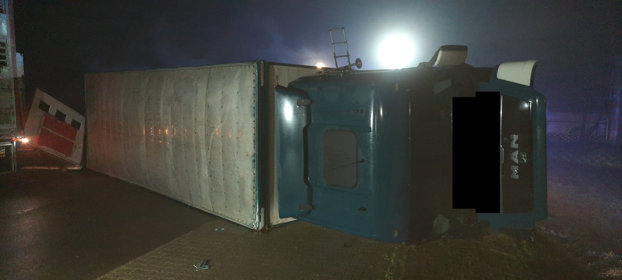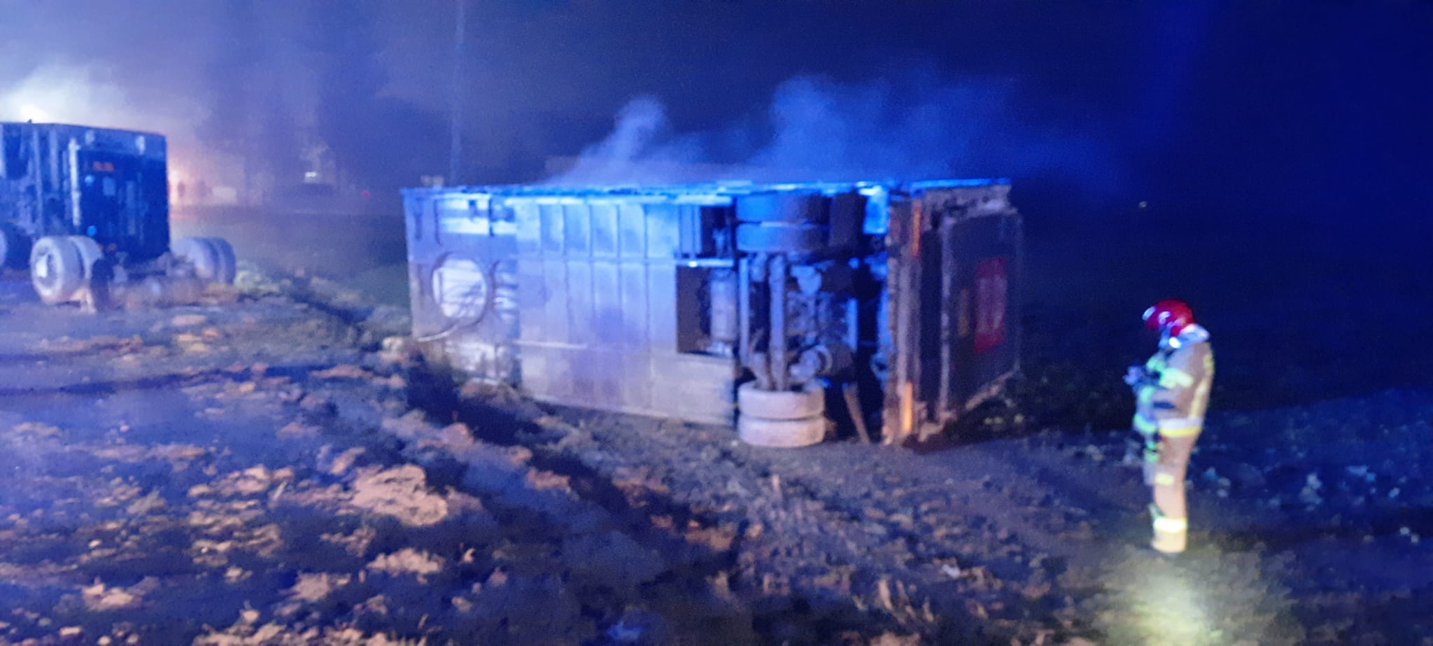 W poniedziałek, 24 stycznia o godz. 18.30 do dyżurnego Stanowiska Kierowania Państwowej Straży Pożarnej w Szamotułach wpłynęło zgłoszenie z Centrum Powiadamiania Ratunkowego, które informowało o przewróceniu się samochodu ciężarowego z przyczepą w miejscowości Duszniki na ul. Chełmińskiej.