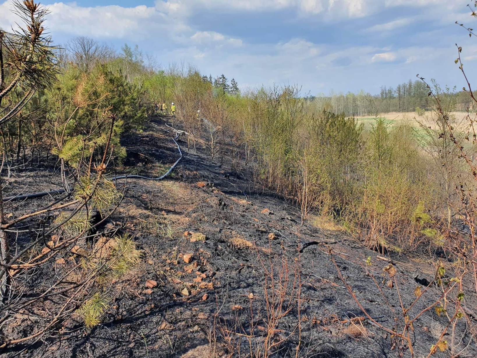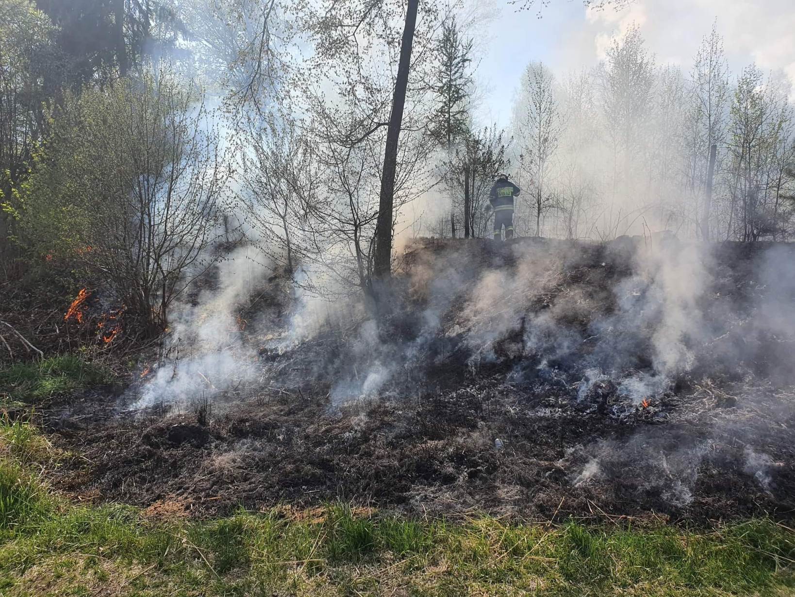 Po dojeździe na miejsce zdarzenia strażacy zastali pożar poszycia leśnego w oddziale 450.