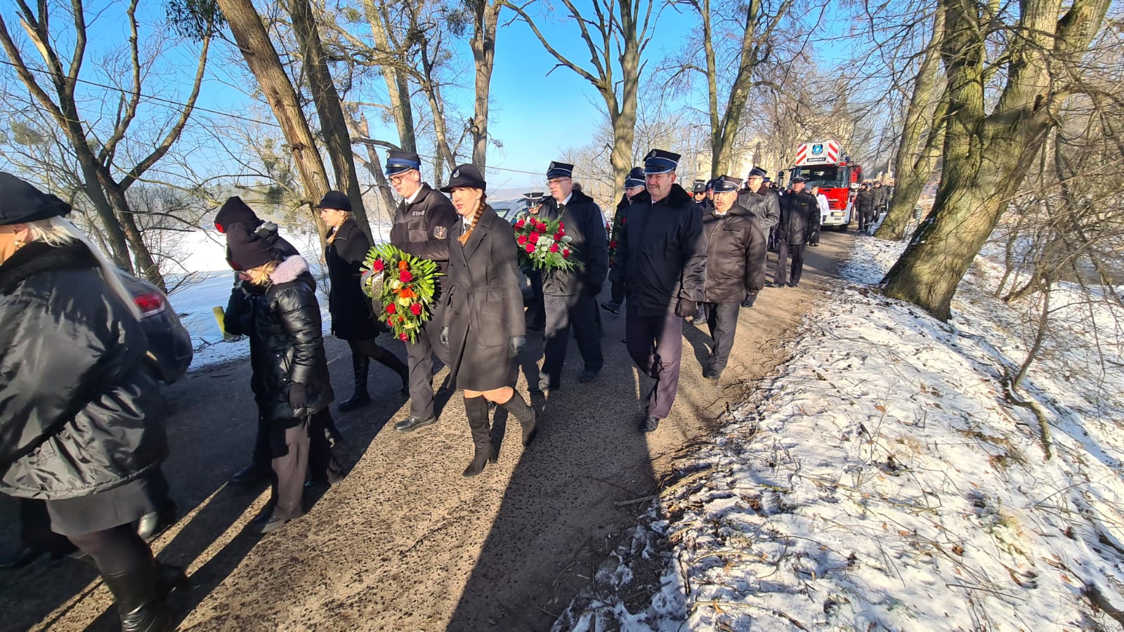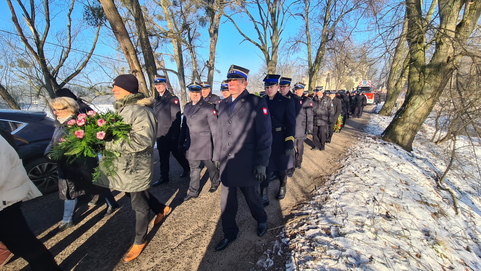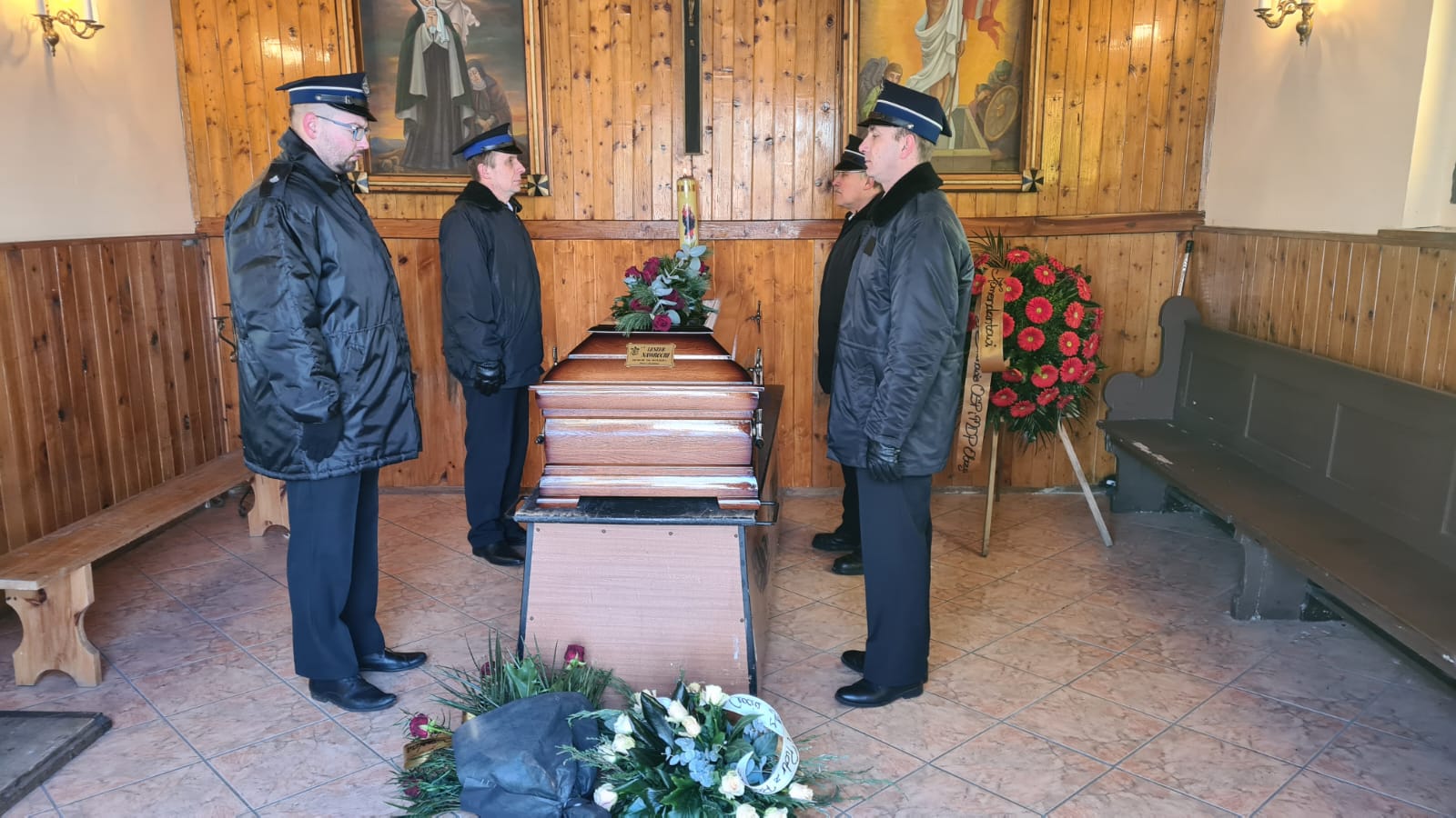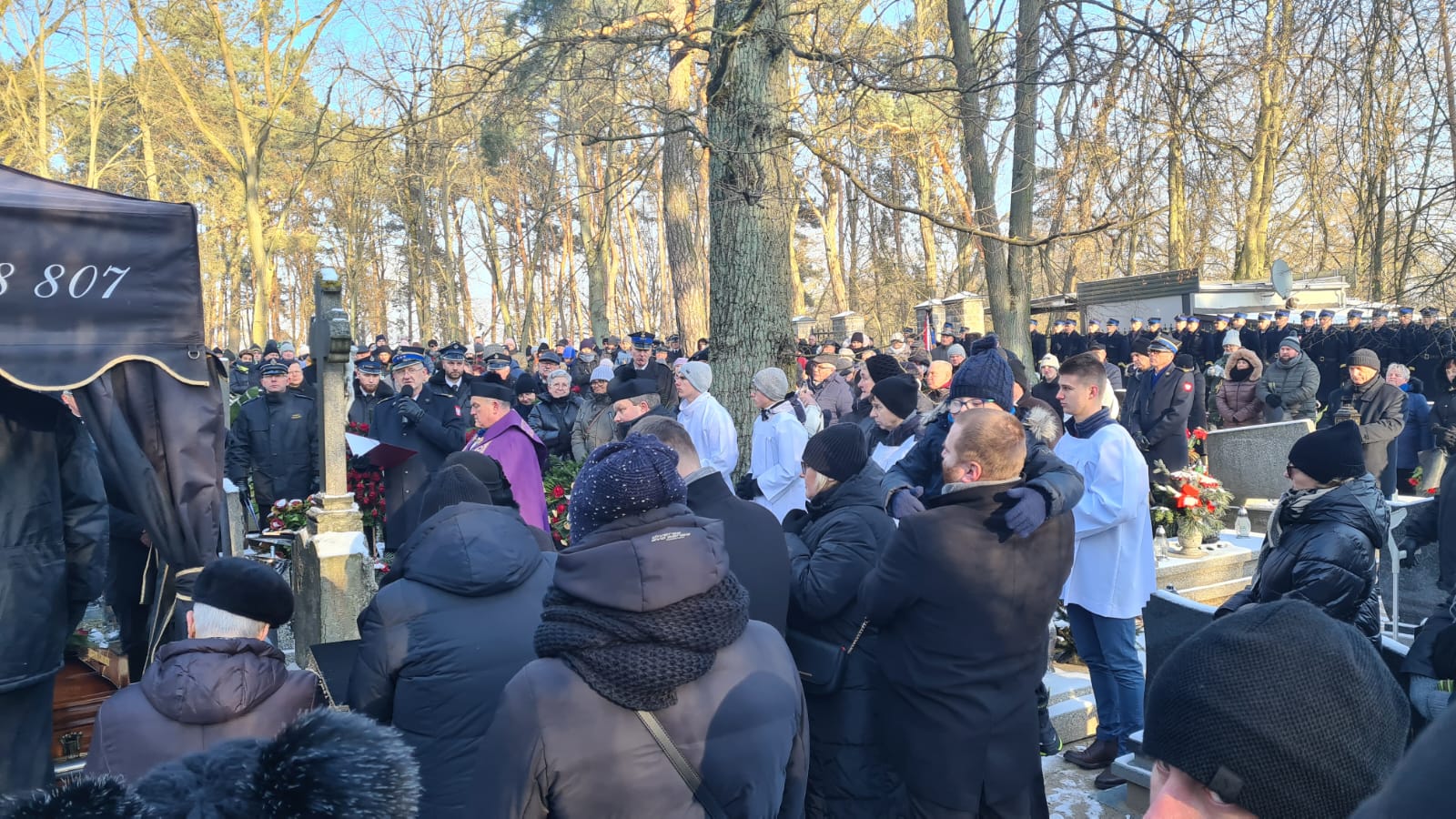 Zgodnie ze strażacką tradycją i ceremoniałem, trumna z ciałem zmarłego pokonała ostatnią drogę na samochodzie specjalnym z drabiną mechaniczną. Następnie trumnę na miejsce wiecznego spoczynku nieśli druhowie OSP i funkcjonariusze PSP.