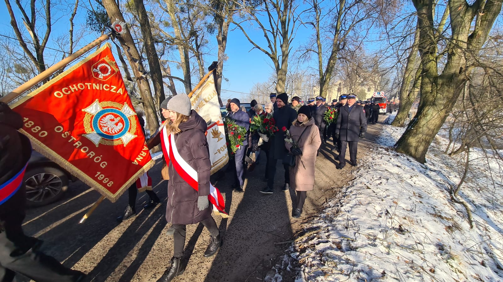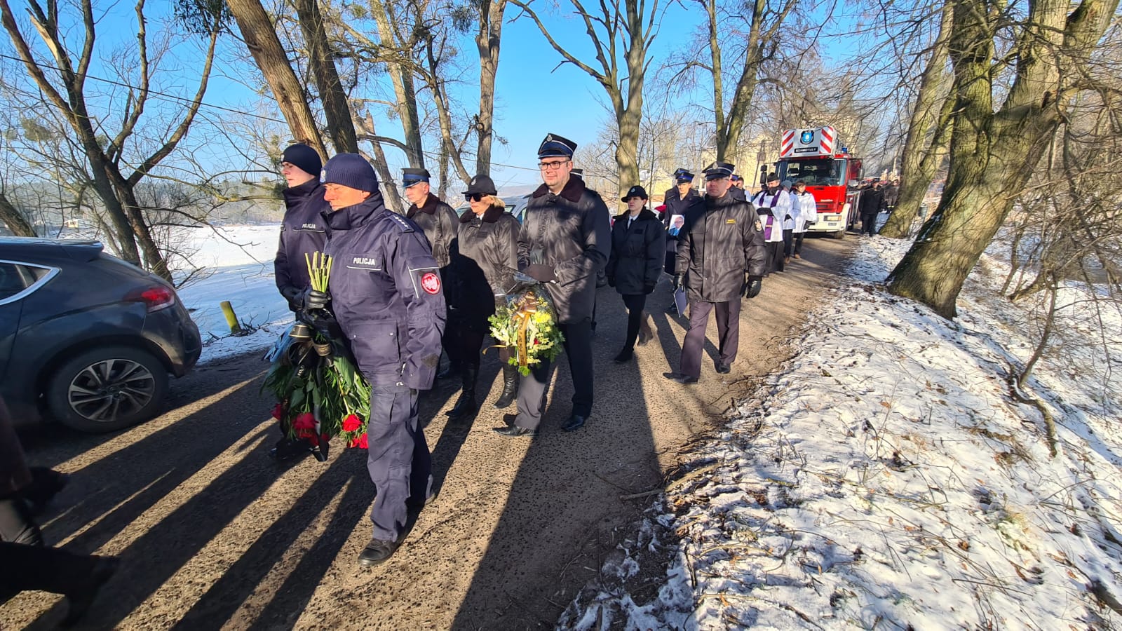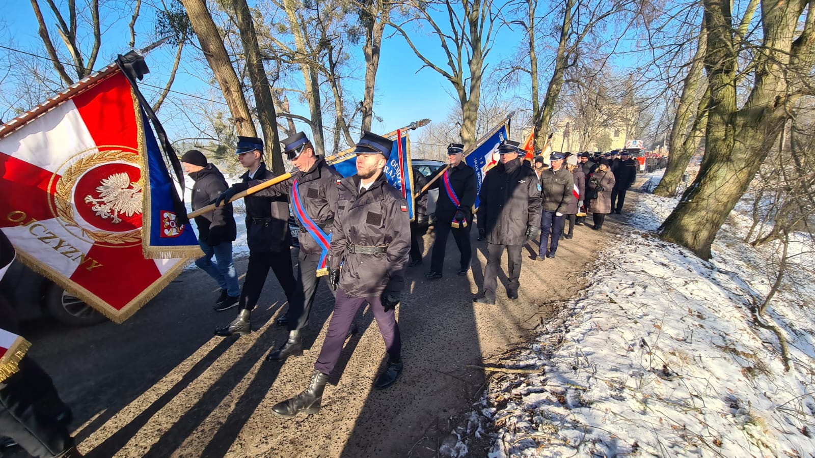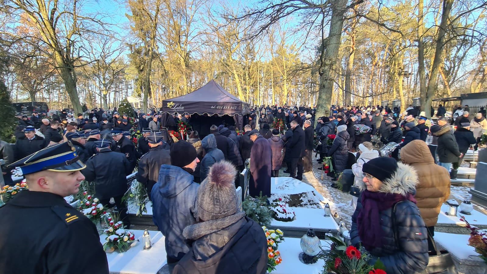 Zgodnie ze strażacką tradycją i ceremoniałem, trumna z ciałem zmarłego pokonała ostatnią drogę na samochodzie specjalnym z drabiną mechaniczną. Następnie trumnę na miejsce wiecznego spoczynku nieśli druhowie OSP i funkcjonariusze PSP.