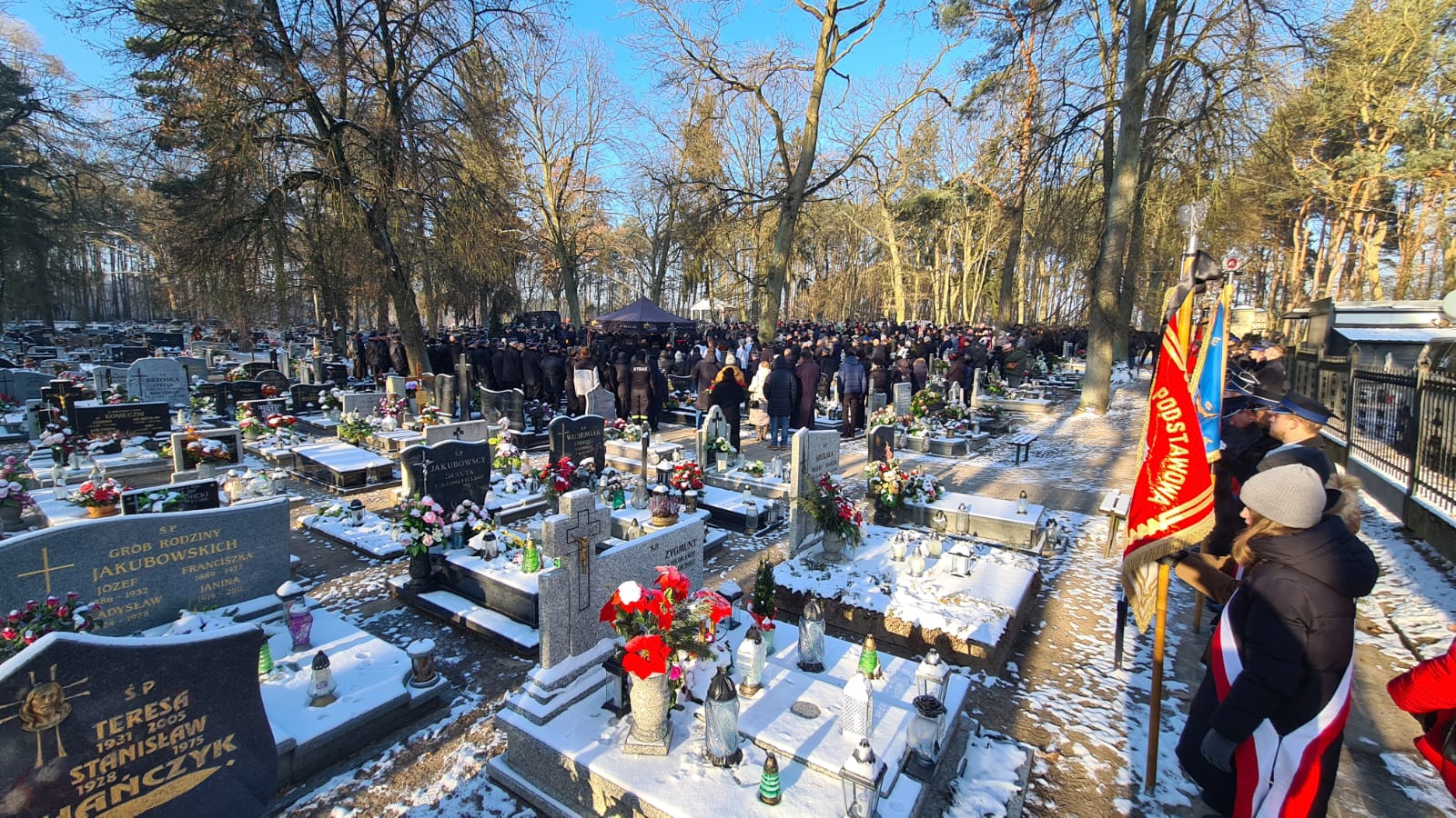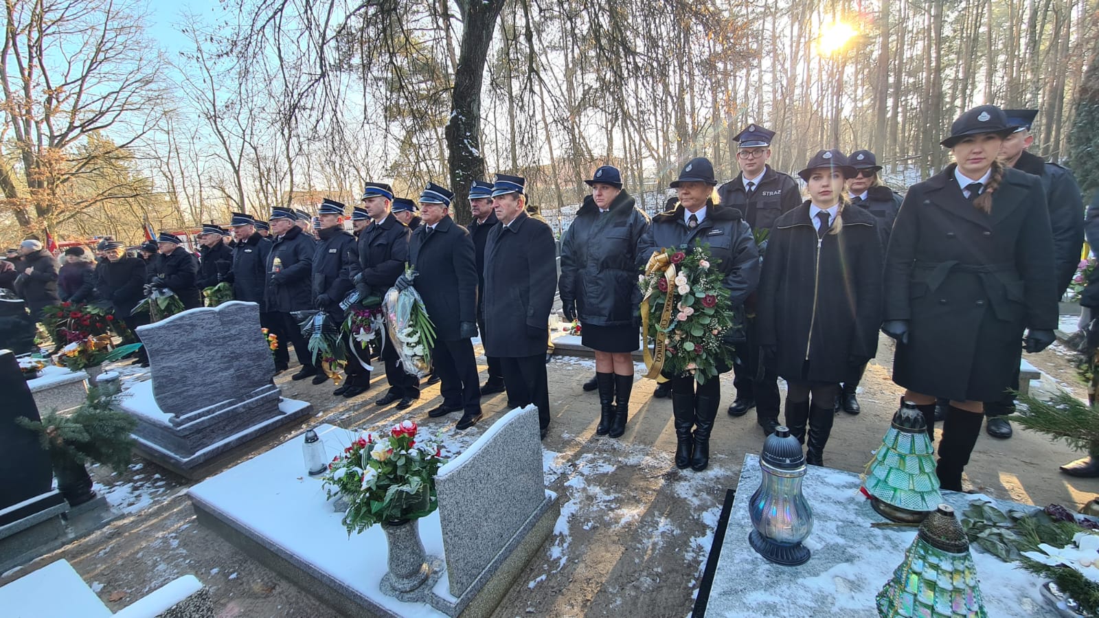 W uroczystościach pogrzebowych uczestniczyli między innymi: kompania reprezentacyjna Szkoły Aspirantów Państwowej Straży Pożarnej w Poznaniu, Zastępca Wielkopolskiego Komendanta Wojewódzkiego PSP w Poznaniu bryg. Robert Natunewicz, komendant Szkoły Aspirantów PSP w Poznaniu st. bryg. Mariusz Hulewicz, Komendant Miejski PSP w Poznaniu st. bryg. Jacek Michalak, Komendant Powiatowy PSP w Szamotułach st. bryg. Ireneusz Pers, emerytowani byli komendanci Szkoły Aspirantów PSP w Poznaniu, poczty sztandarowe Szkoły Aspirantów, Komendy Powiatowej PSP w Szamotułach, jednostek Ochotniczych Straży Pożarnych i liczne delegacje Ochotniczych Straży Pożarnych z całej Polski oraz wielu współpracowników zmarłego.