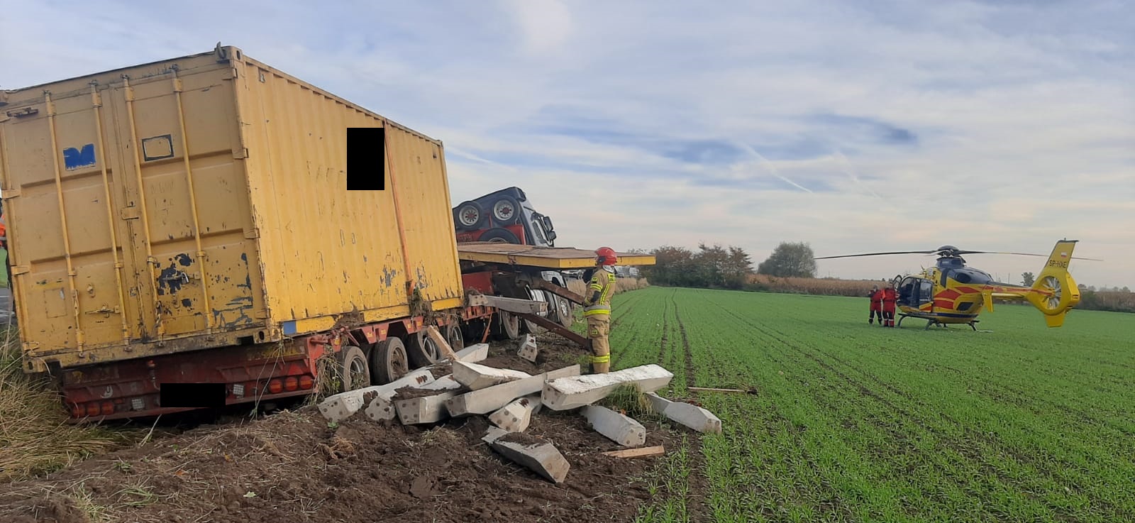 W poniedziałek, 25 października o godz. 16.05 do dyżurnego Stanowiska Kierowania Państwowej Straży Pożarnej w Szamotułach wpłynęło zgłoszenie z Centrum Powiadamiania Ratunkowego, które informowało o wjechaniu pojazdu ciężarowego do rowu oraz jednej osobie poszkodowanej w miejscowości Chełminko gm. Duszniki.