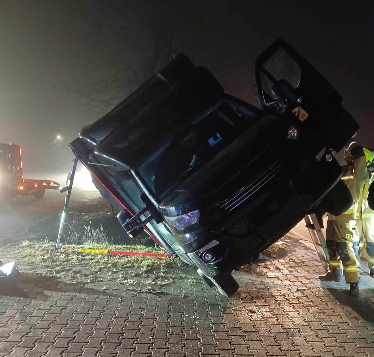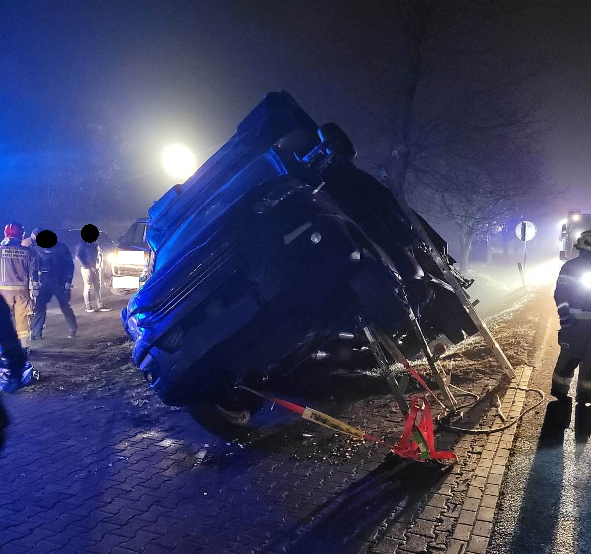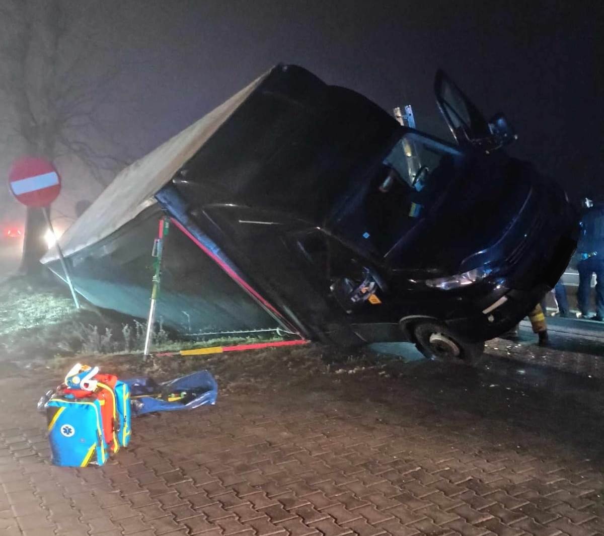 W niedzielę, 19 stycznia 2025 roku o godz. 20.19 do dyżurnego Stanowiska Kierowania Państwowej Straży Pożarnej w Szamotułach wpłynęło zgłoszenie z Centrum Powiadamiania Ratunkowego, które informowało o samochodzie ciężarowym znajdującym się w rowie oraz jednej osobie poszkodowanej uwięzionej wewnątrz pojazdu na trasie Pniewy - Poznań w miejscowości Podrzewie.