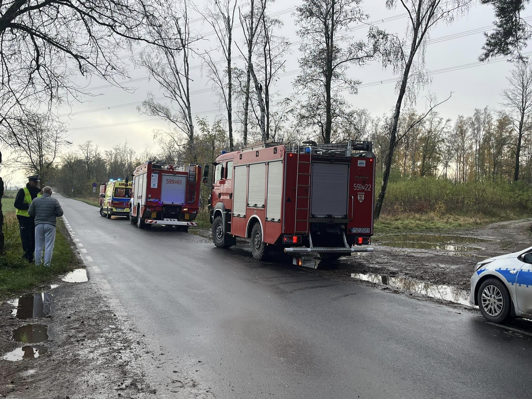 Po dojeździe na miejsce zdarzenia strażacy zastali samochód osobowy, który przodem uderzył w drzewo. Kierująca opuściła pojazd przed przybyciem SP i znajdowała się w pobliżu.