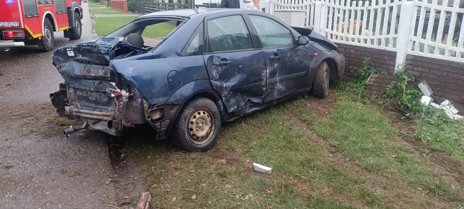 Po dojeździe na miejsce zdarzenia strażacy zastali samochód osobowy marki Ford, który uderzył w ogrodzenie posesji. Pasażer znajdował się wewnątrz pojazdu, natomiast kierujący znajdował się w pobliżu pod opieką świadków zdarzenia.