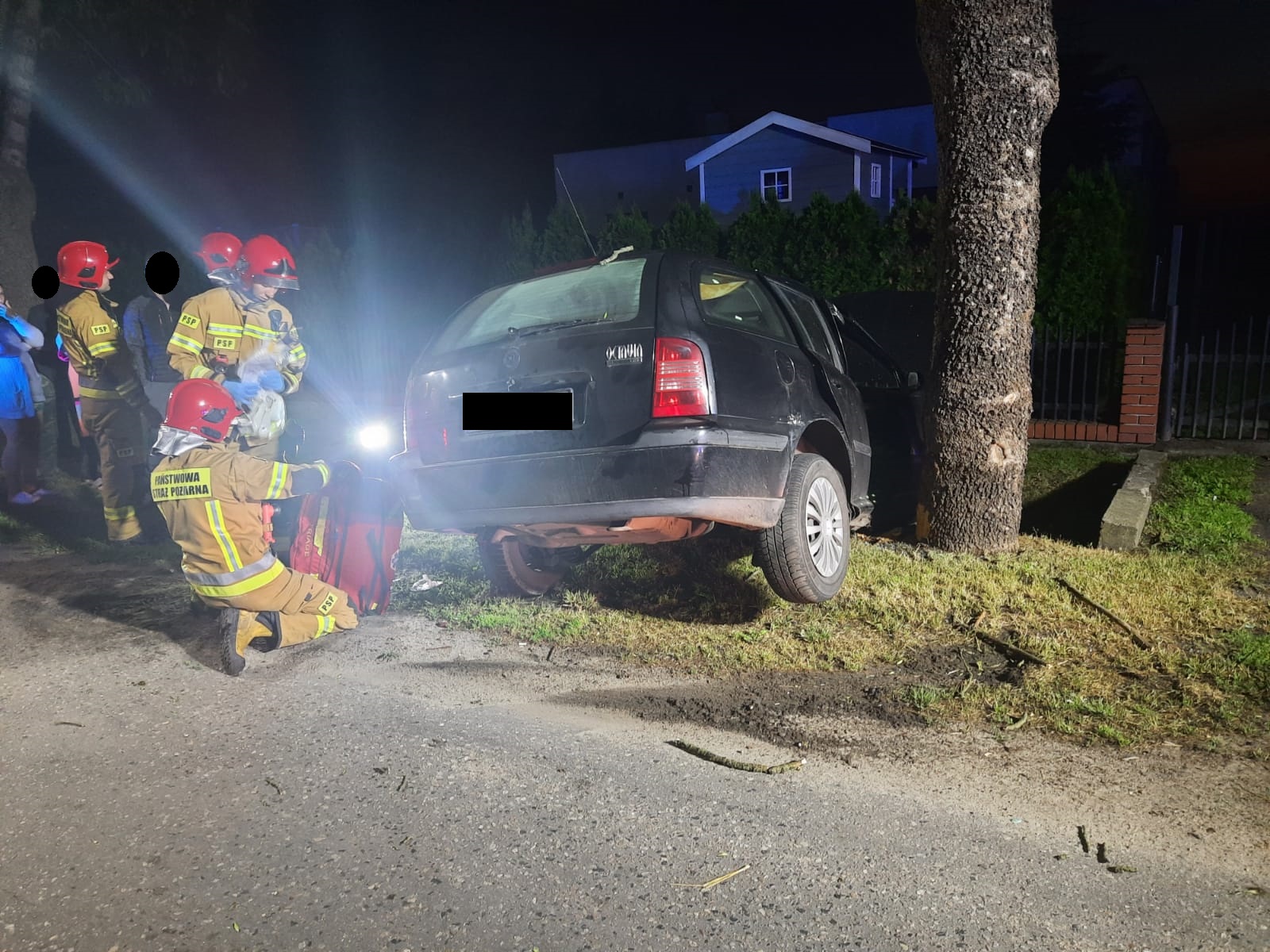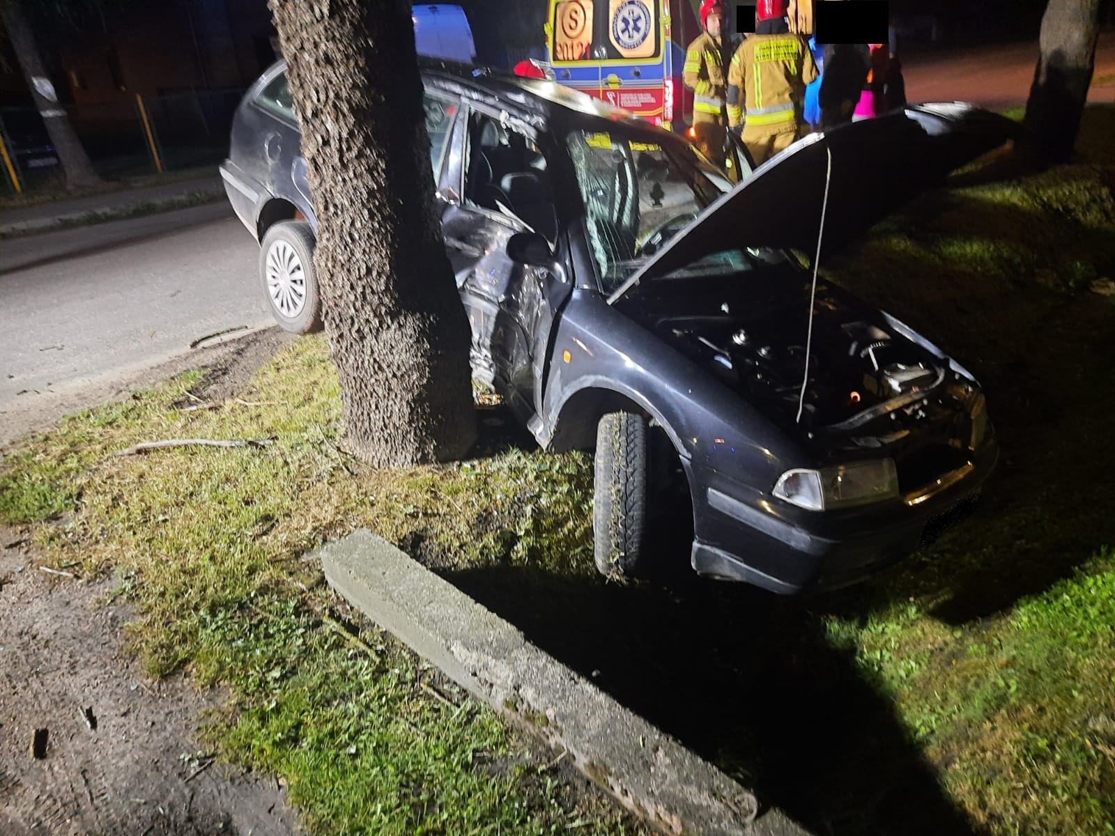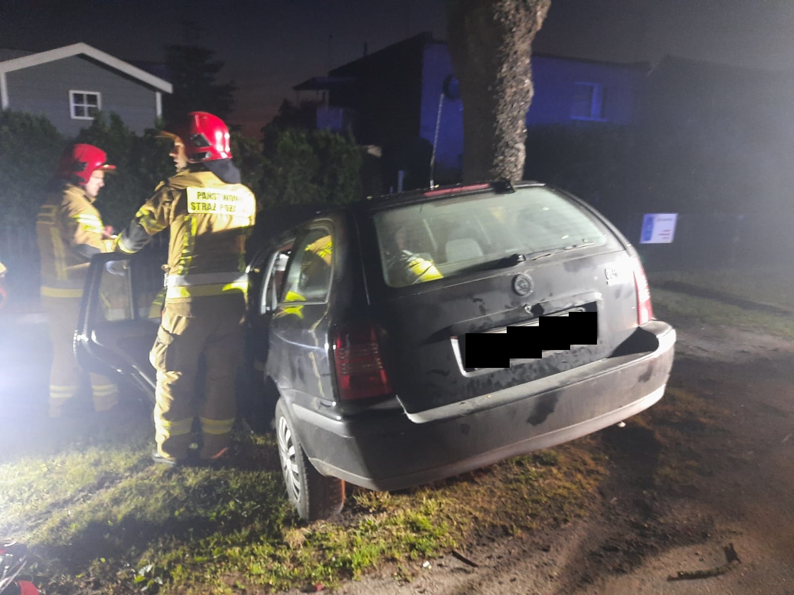 Po dojeździe na miejsce zdarzenia strażacy zastali samochód osobowy, który uderzył prawym bokiem w drzewo. Kierujący znajdował się wewnątrz pojazdu - lekko ranny.