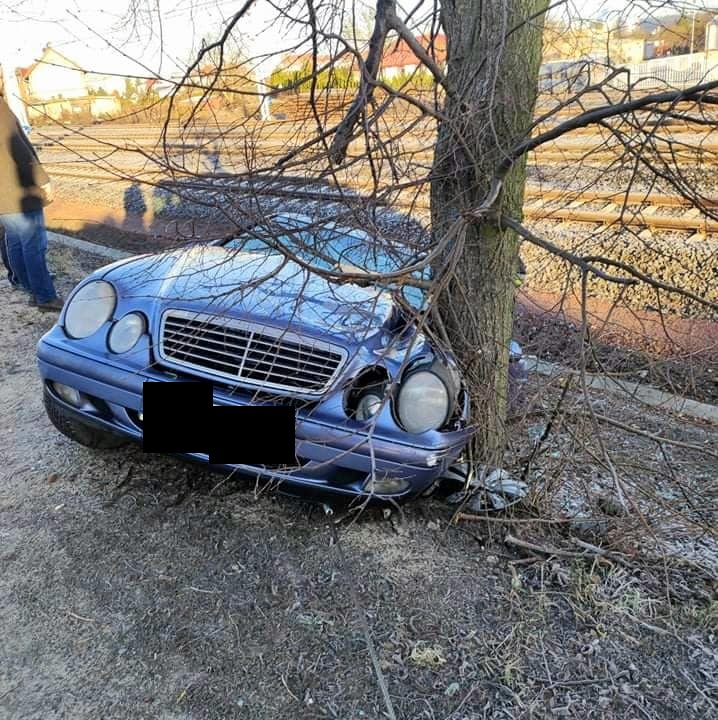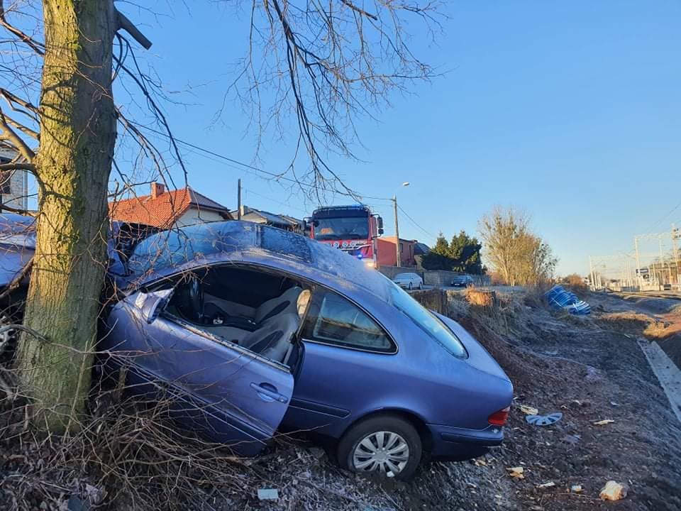 SAMOCHÓD UDERZYŁ BOKIEM W DRZEWO, JEDNA OSOBA POSZKODOWANA