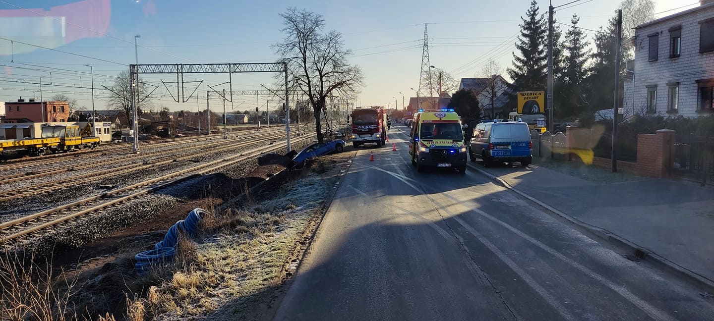 Po dojeździe na miejsce zdarzenia strażacy zastali samochód osobowy, który znajdował się w rowie w pobliżu torowiska. Osoby podróżujące opuściły pojazd przed przybyciem SP i znajdowały się w pobliżu.