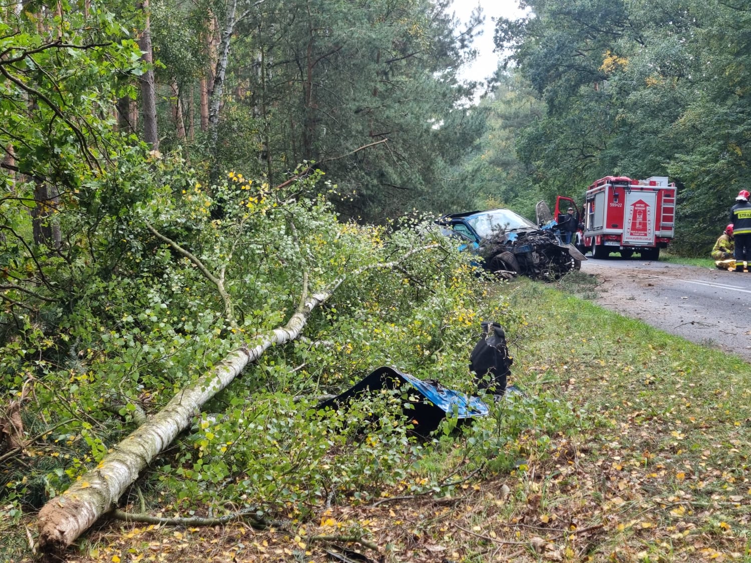 W piątek, 30 września o godz. 10.55 do dyżurnego Stanowiska Kierowania Państwowej Straży Pożarnej w Szamotułach wpłynęło zgłoszenie z Centrum Powiadamiania Ratunkowego, które informowało o uderzeniu samochodu osobowego w drzewo oraz dwóch osobach poszkodowanych na trasie Zielonagóra-Stobnica.