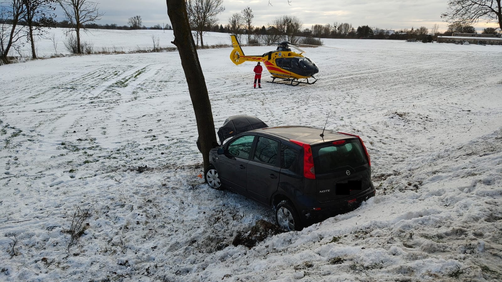 W niedzielę, 11 stycznia 2026 roku o godzinie 12.28 do dyżurnego Stanowiska Kierowania Państwowej Straży Pożarnej w Szamotułach wpłynęło zgłoszenie z Centrum Powiadamiania Ratunkowego, które informowało o samochodzie osobowym, który uderzył w drzewo oraz dwóch osobach poszkodowanych na drodze wojewódzkiej nr 306 w miejscowości Pólko.