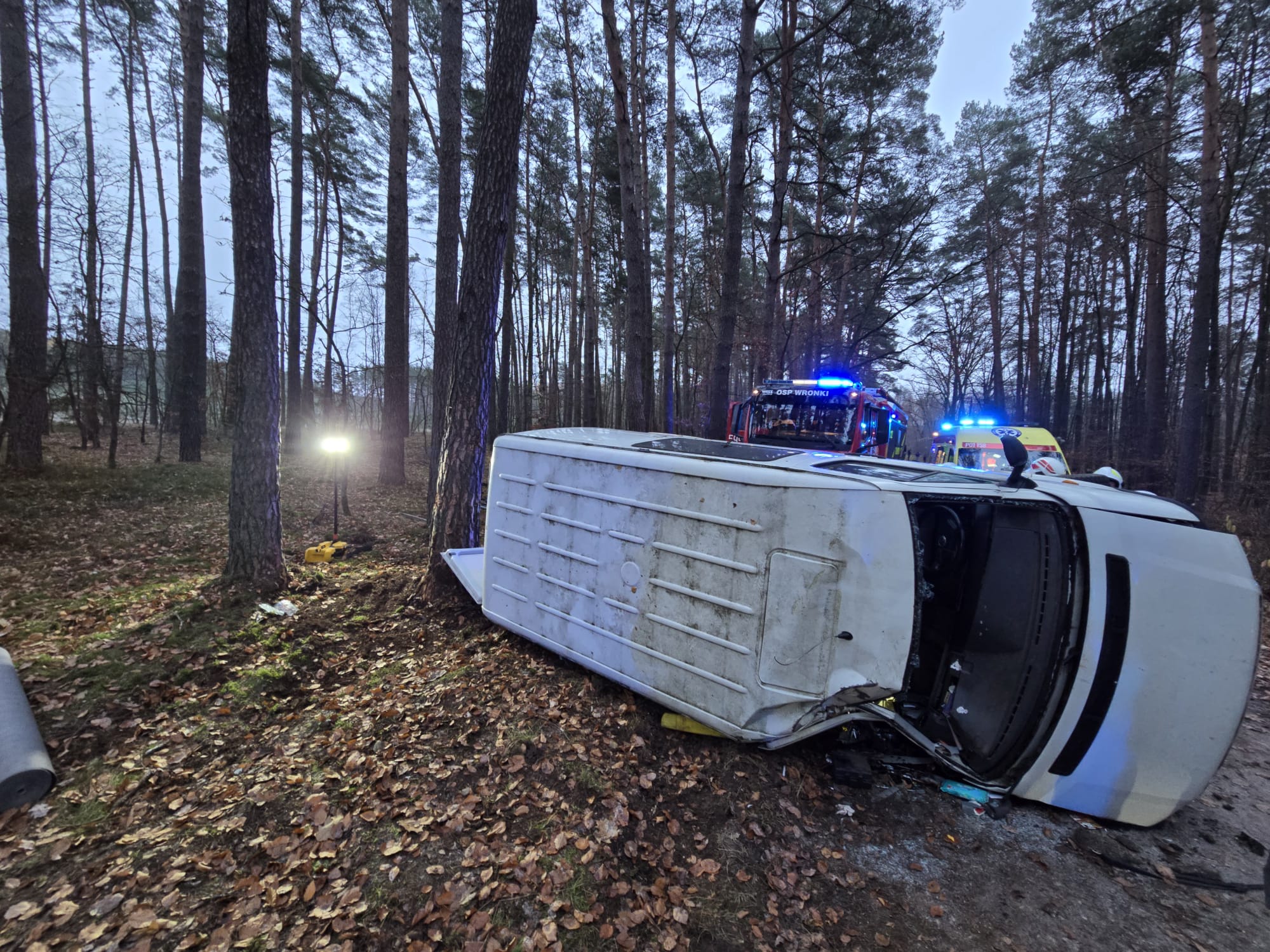 W niedzielę, 23 listopada 2025 roku o godz. 7.16 do dyżurnego Stanowiska Kierowania Państwowej Straży Pożarnej w Szamotułach wpłynęło zgłoszenie z Centrum Powiadamiania Ratunkowego, które informowało o leżącym samochodzie na boku oraz jednej osobie poszkodowanej znajdującej się w pojeździe w miejscowości Pożarowo.