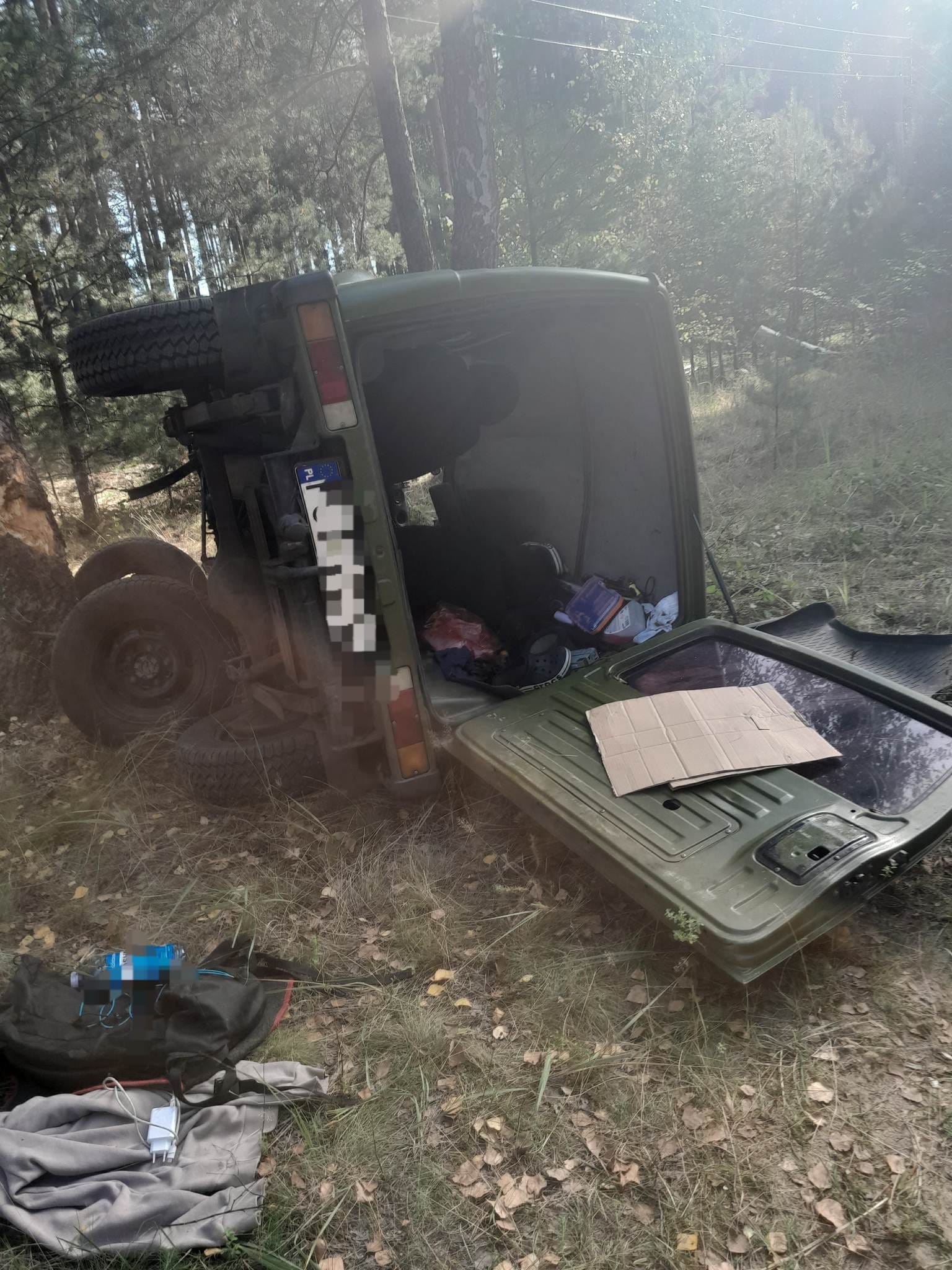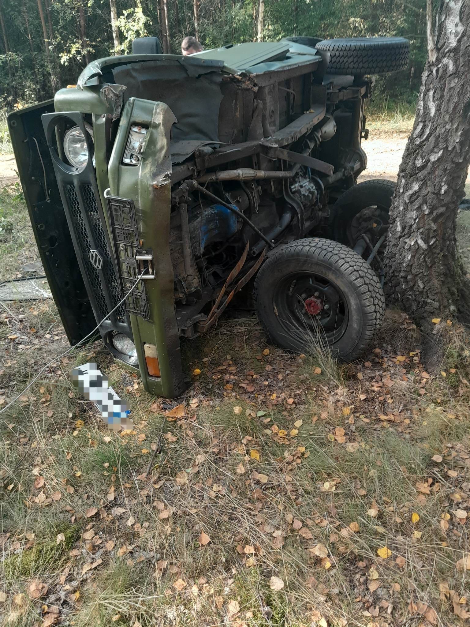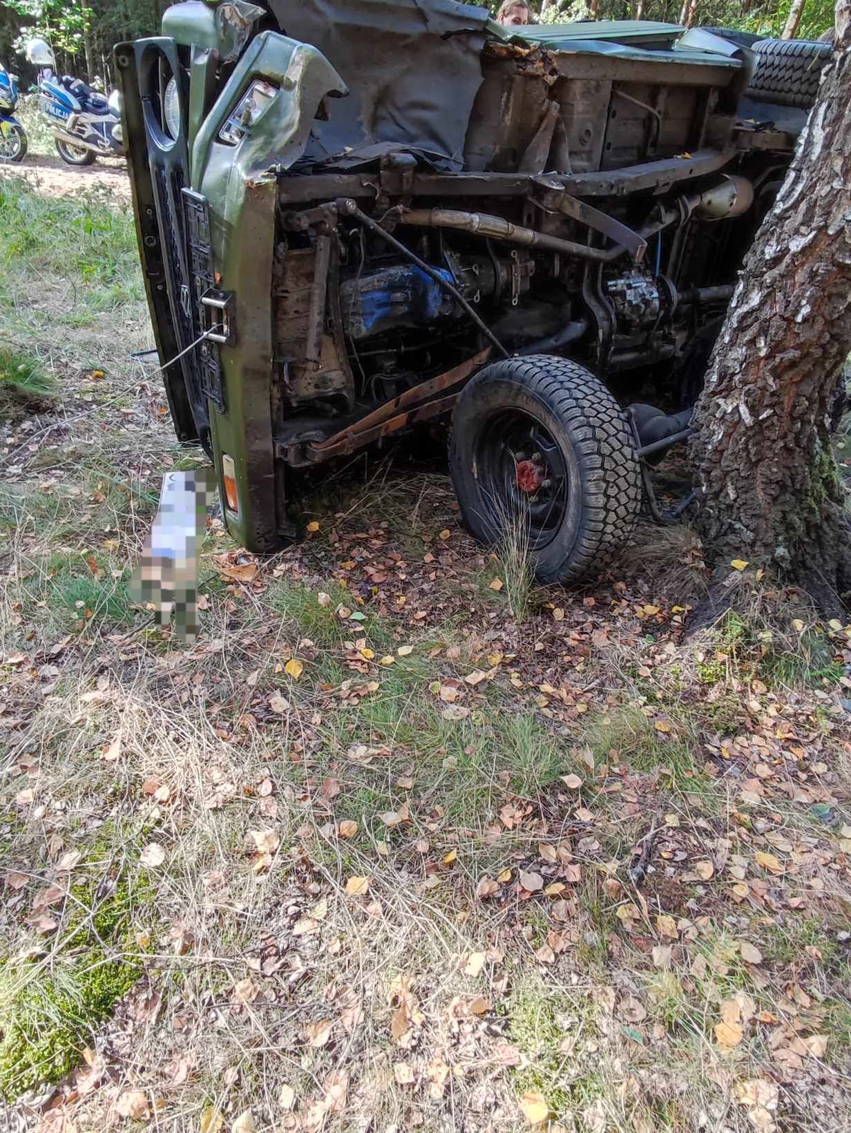 SAMOCHÓD UDERZYŁ W DRZEWO NA DRODZE LEŚNEJ, JEDNA OSOBA POSZKODOWANA