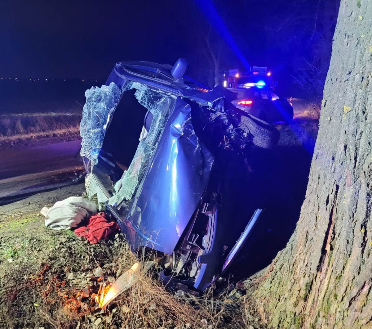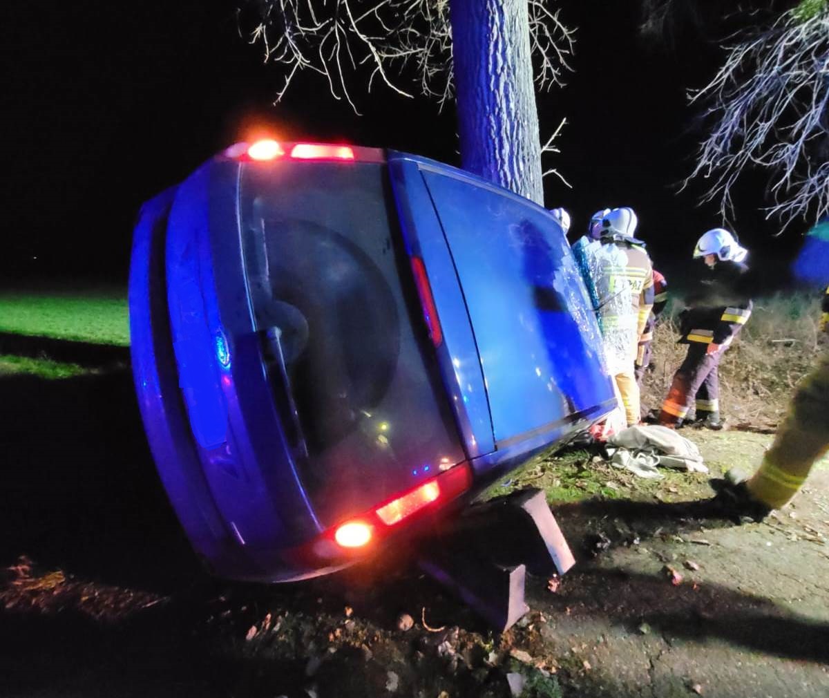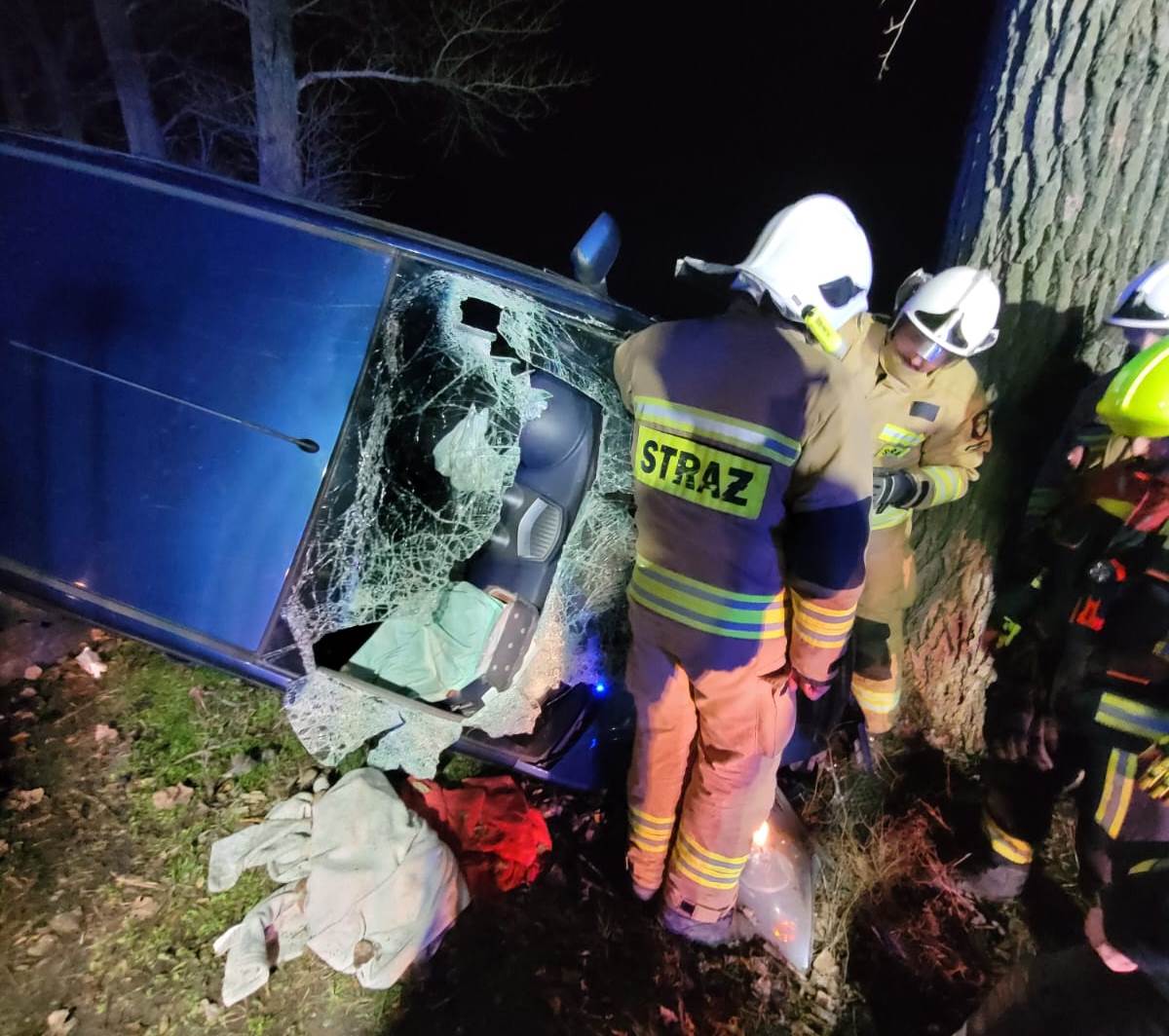 W środę, 1 stycznia 2025 roku o godz. 17.43 do dyżurnego Stanowiska Kierowania Państwowej Straży Pożarnej w Szamotułach wpłynęło zgłoszenie z Centrum Powiadamiania Ratunkowego, które informowało o uderzeniu samochodu osobowego w drzewo oraz jednej osobie poszkodowanej uwięzionej wewnątrz pojazdu na trasie Grzebienisko - Ceradz Dolny.