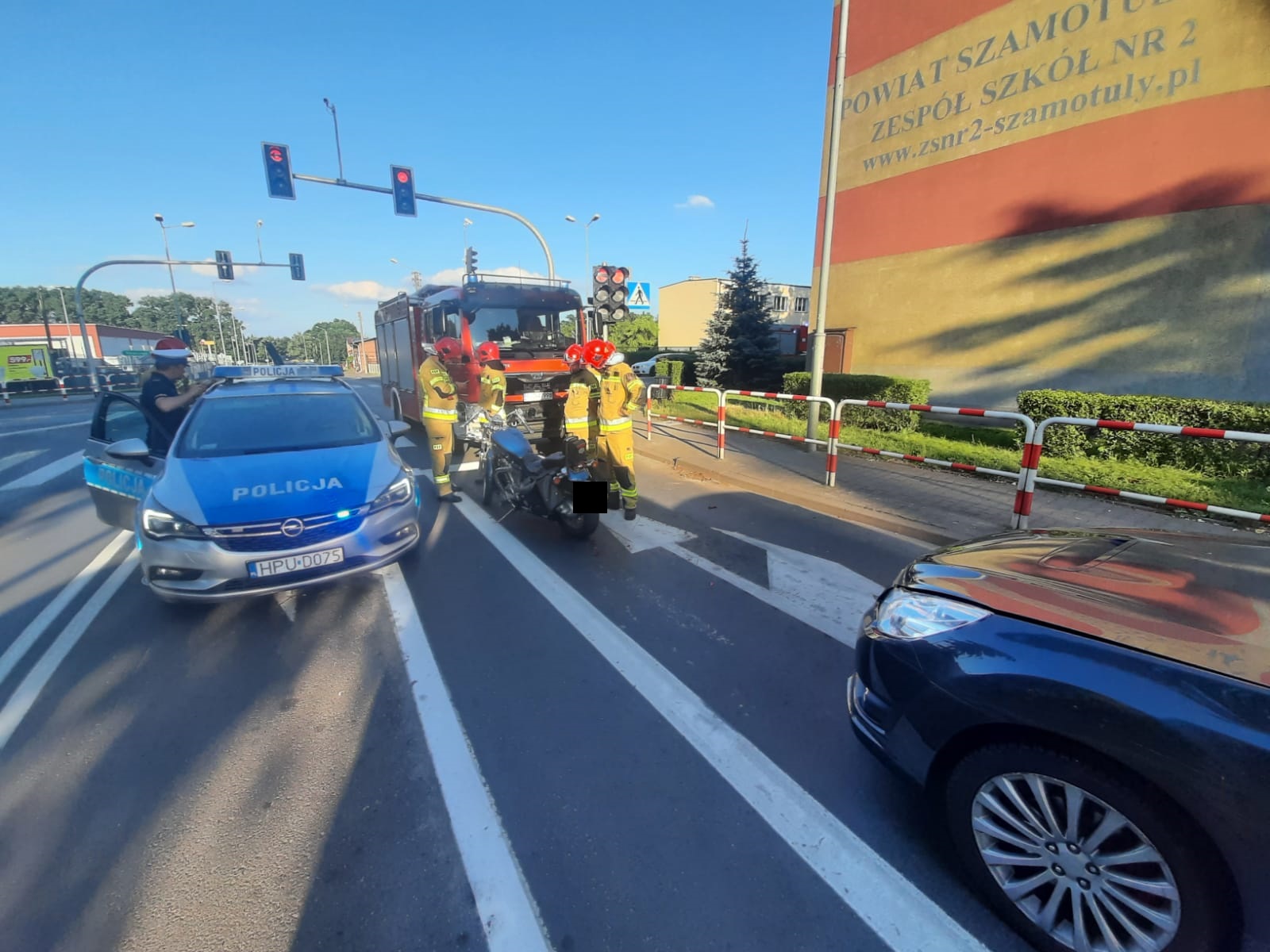 W sobotę, 10 lipca o godzinie 18.47 do dyżurnego Stanowiska Kierowania Państwowej Straży Pożarnej w Szamotułach wpłynęło zgłoszenie o wypadku drogowym z udziałem samochodu osobowego i motocykla oraz jednej osobie poszkodowanej na drodze wojewódzkiej nr 184 w miejscowości Szamotuły na ul. Zamkowej.