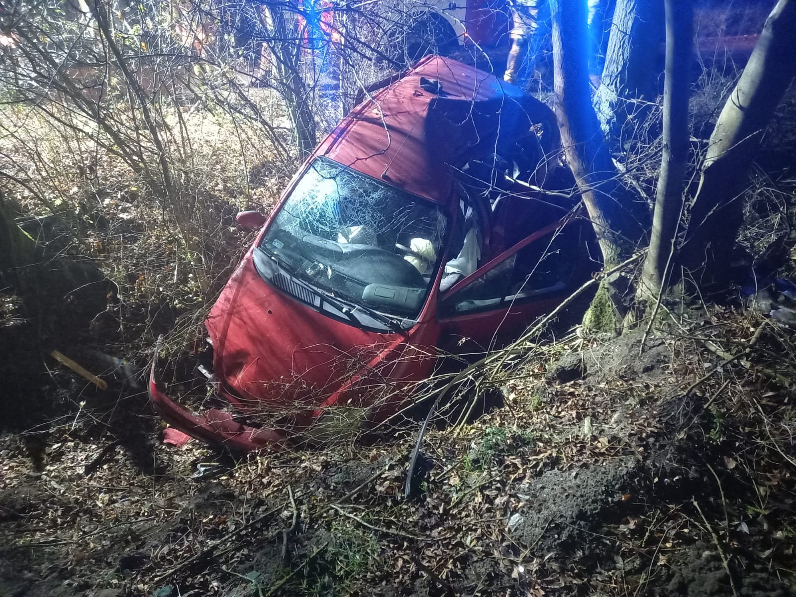 Po dojeździe na miejsce zdarzenia strażacy zastali samochód osobowy, który znajdował się w przydrożnym rowie. Kierujący znajdował się uwięziony wewnątrz pojazdu. Policja była na miejscu.