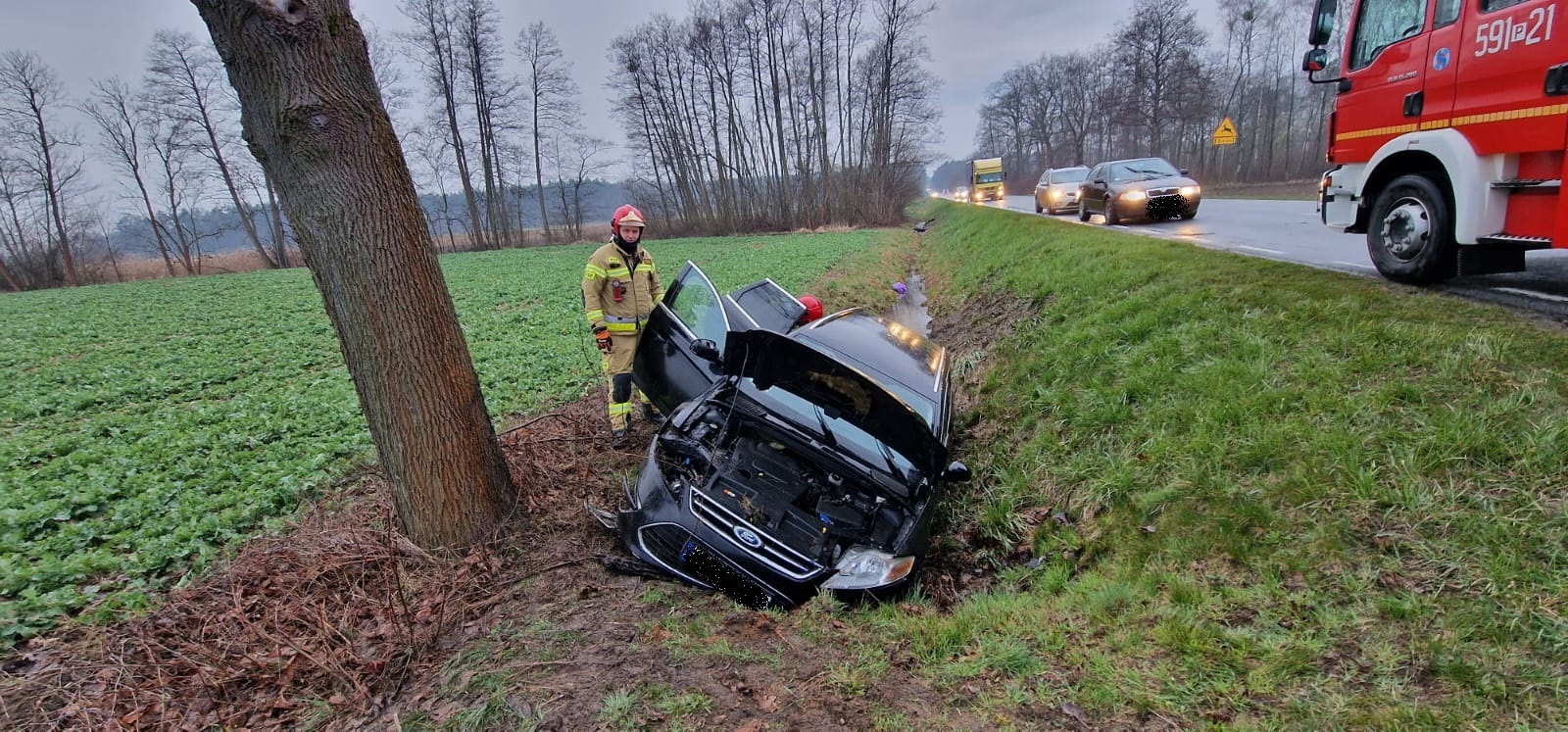 W czwartek, 30 marca o godz. 6.40 do dyżurnego Stanowiska Kierowania Państwowej Straży Pożarnej w Szamotułach wpłynęło zgłoszenie z Centrum Powiadamiania Ratunkowego, które informowało o wypadku drogowym oraz jednej osobie poszkodowanej na trasie Szamotuły – Pniewy w miejscowości Jastrowo.