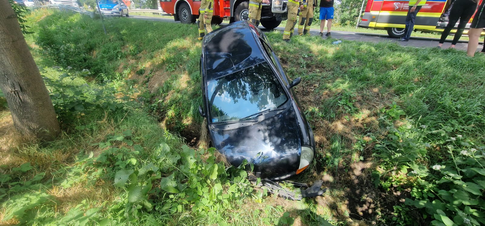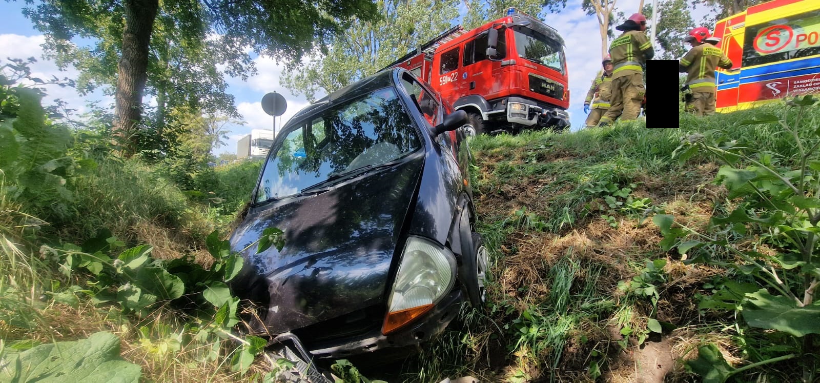 W środę, 12 lipca o godz. 14.56 do dyżurnego Stanowiska Kierowania Państwowej Straży Pożarnej w Szamotułach wpłynęło zgłoszenie z Centrum Powiadamiania Ratunkowego, które informowało o samochodzie osobowym znajdującym się w rowie oraz jednej osobie poszkodowanej uwięzionej wewnątrz pojazdu w miejscowości Kąsinowo gm. Szamotuły.