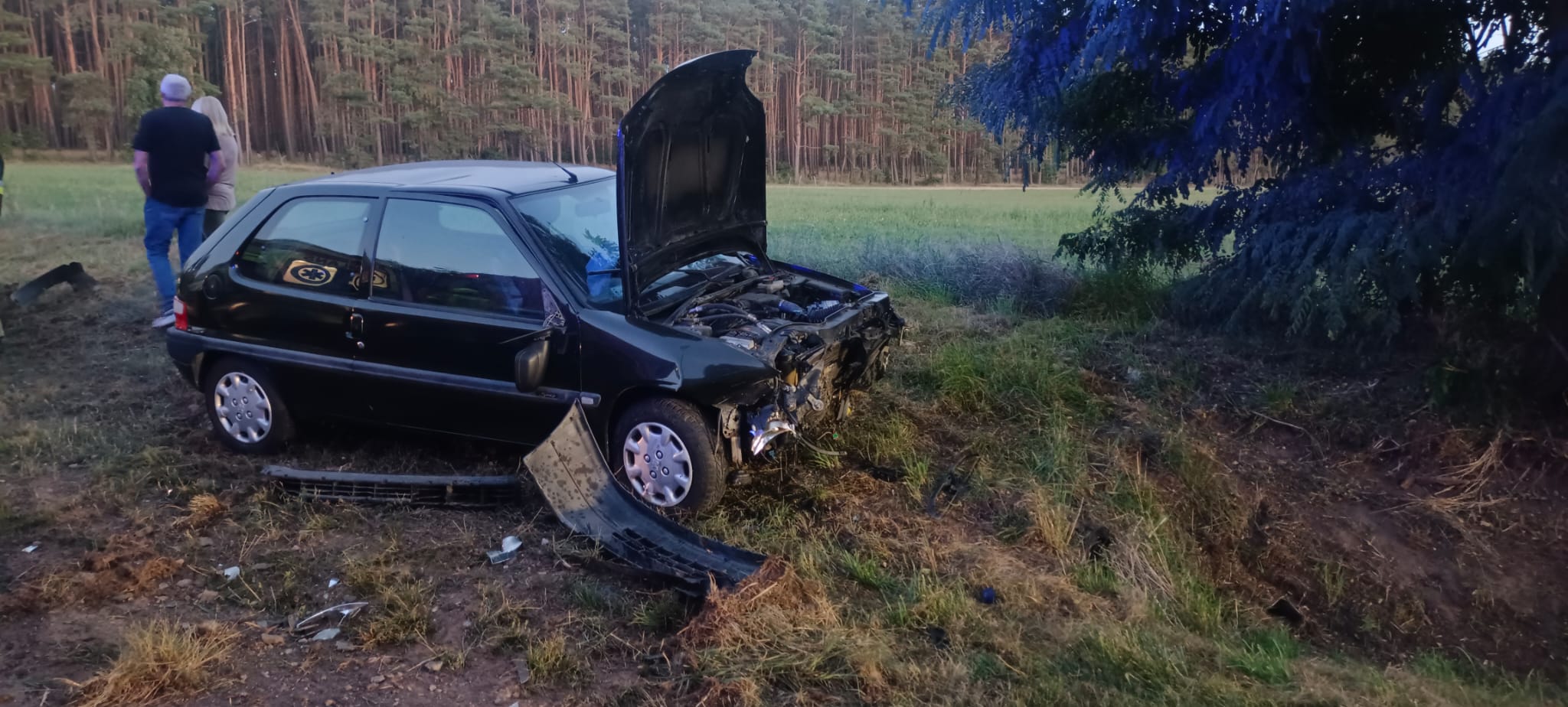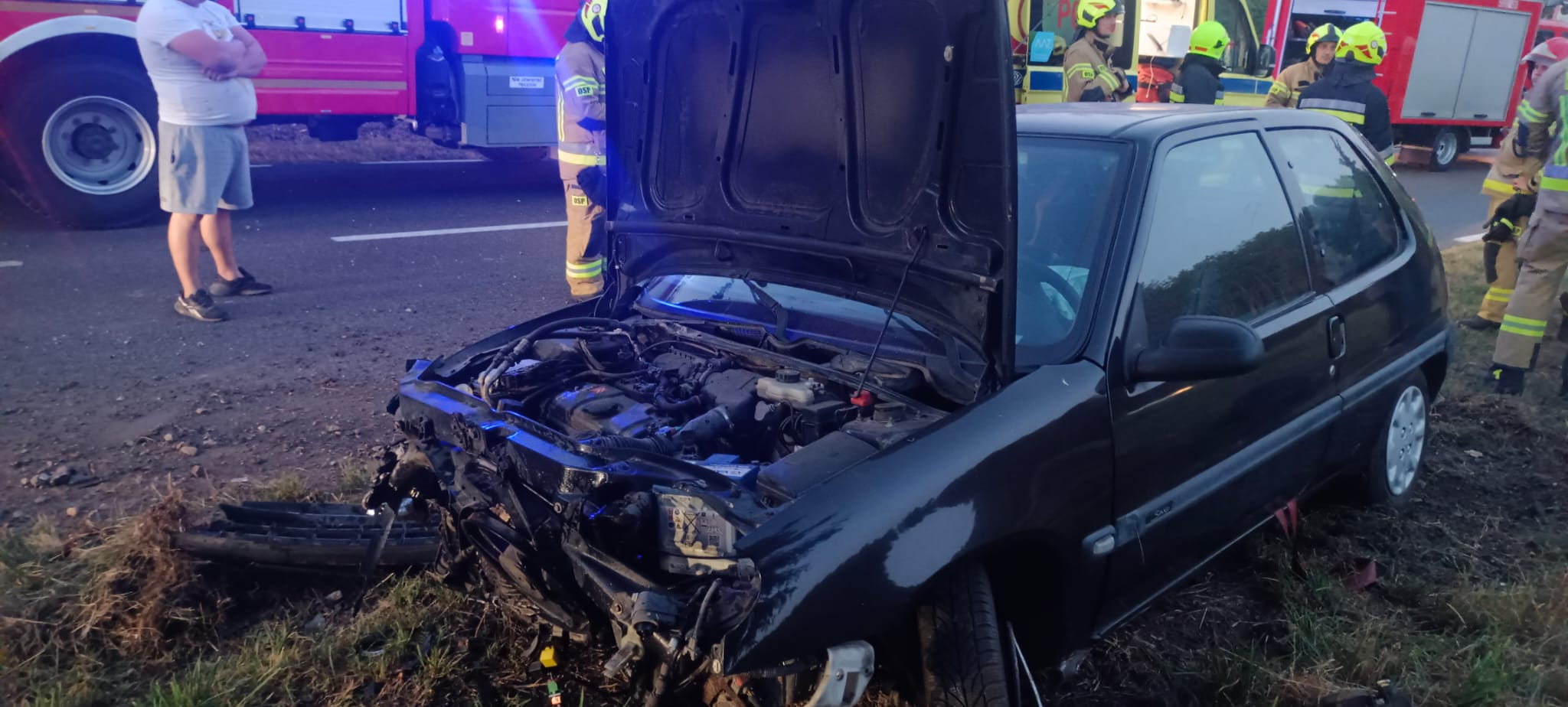 Po dojeździe na miejsce zdarzenia strażacy zastali samochód osobowy marki Citroen, który znajdował się poza drogą w rowie.