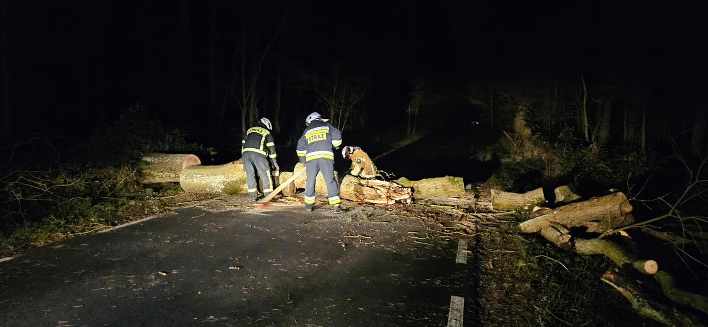 Strażacy interweniowali łącznie przy 66 zdarzeniach, w tym (usuwanie połamanych drzew i konarów 48 razy, pompowanie wody 9 razy, zabezpieczeniu uszkodzonego dachu 1 raz, zabezpieczenie linii energetycznej 1 raz, pożar 3 razy, inne 4 razy).