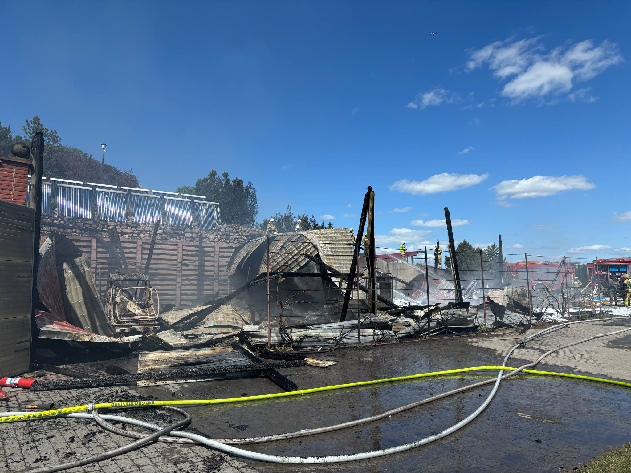 Po dojeździe na miejsce zdarzenia strażacy zastali rozwinięty pożar warsztatu, w pobliżu znajdowały się budynki, które były zagrożone pożarem.