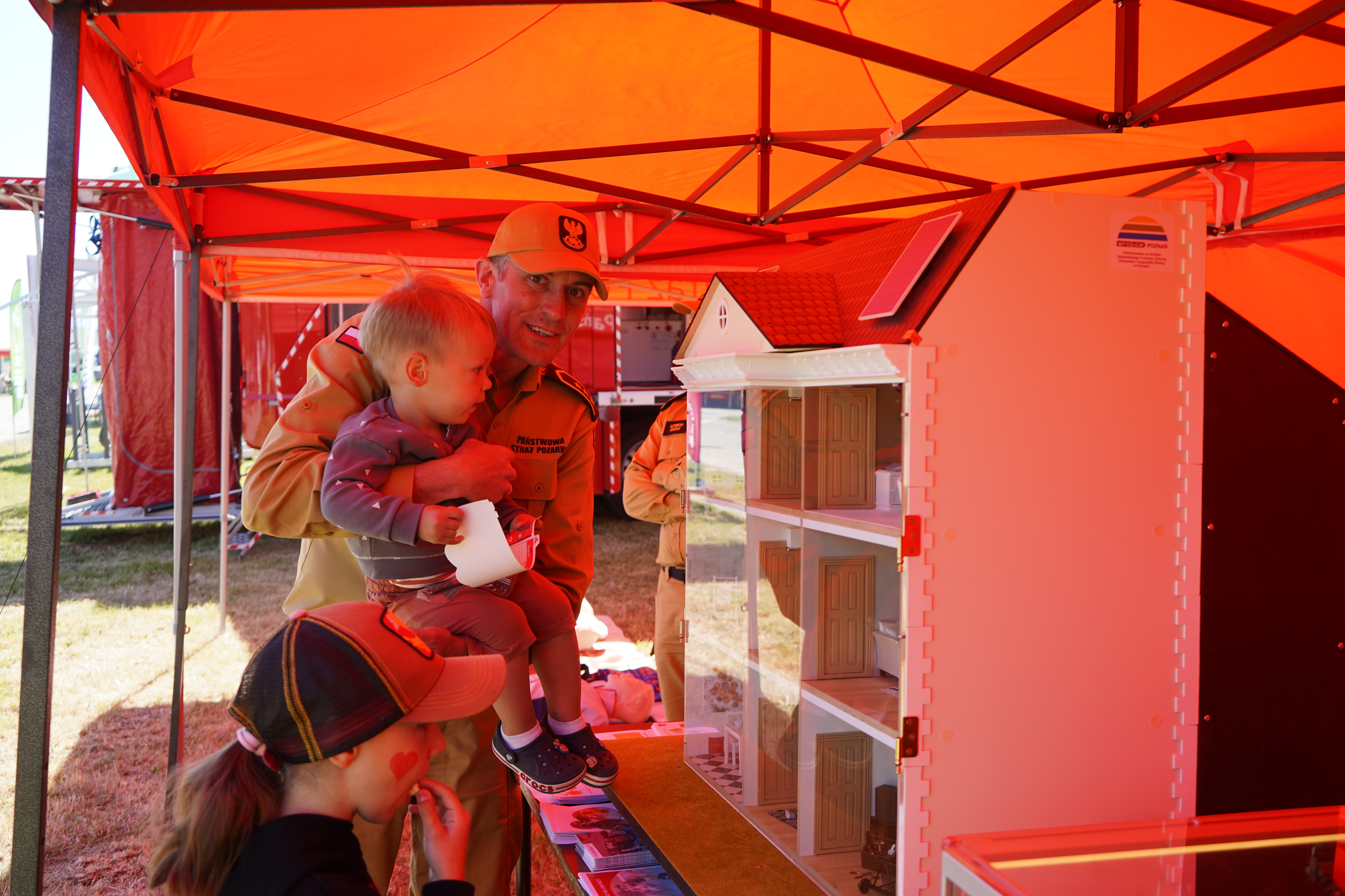 Państwowa Straż Pożarna prezentowała na swoim stoisku symulator zagrożeń pożarowych domu jednorodzinnego wraz z modułem woda-las, przy którym można było porozmawiać o zagrożeniach w domu, w lesie, nad wodą czy też na drodze. Ponadto każdy mógł wejść do zadymionego namiotu i zmierzyć się z silnym dymem, a jednocześnie przypomnieć sobie podstawowe zasady ewakuacji, i poczuć się jak prawdziwy strażak podczas prowadzenia działań gaśniczych. Ważnym elementem stoiska była nauka pierwszej pomocy, która jest bardzo istotna, szczególnie w okresie letnim, gdy dochodzi do zdarzeń podczas prac polowych lub nad wodą. Udzielenie pierwszej pomocy do czasu przybycia służb ratowniczych, może uratować poszkodowanej osobie życie. Odwiedzający stoisko PSP mogli również zapoznać się z samochodem ratowniczo-gaśniczym, z samochodem przeznaczonym do dekontaminacji oraz z samochodem specjalnym typu drabina, a także zadawać pytania na nurtujące ich problemy z zakresu ochrony przeciwpożarowej, podstawowych zasad bezpieczeństwa czy jak zostać strażakiem.
