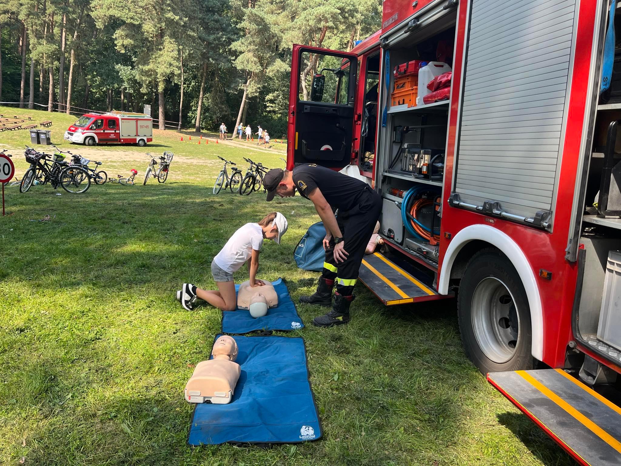 Szamotulscy strażacy na mecie Rajdu Rowerowego, na dzieci czekały atrakcje
