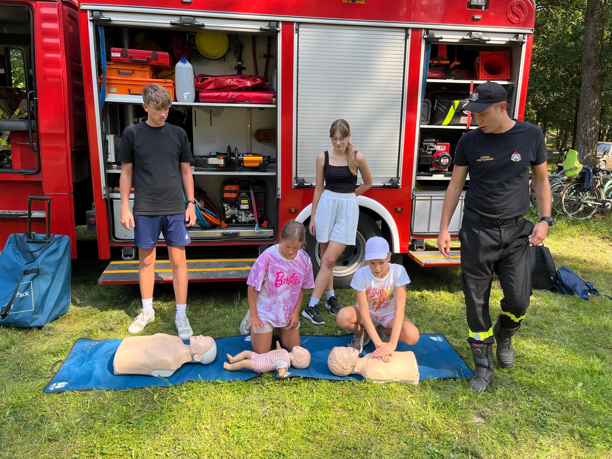 Dla uczestników Rajdu strażacy przygotowali pokaz z zakresu bezpiecznego zachowania nad wodą oraz w jaki sposób reagować w sytuacjach zagrażających życiu.