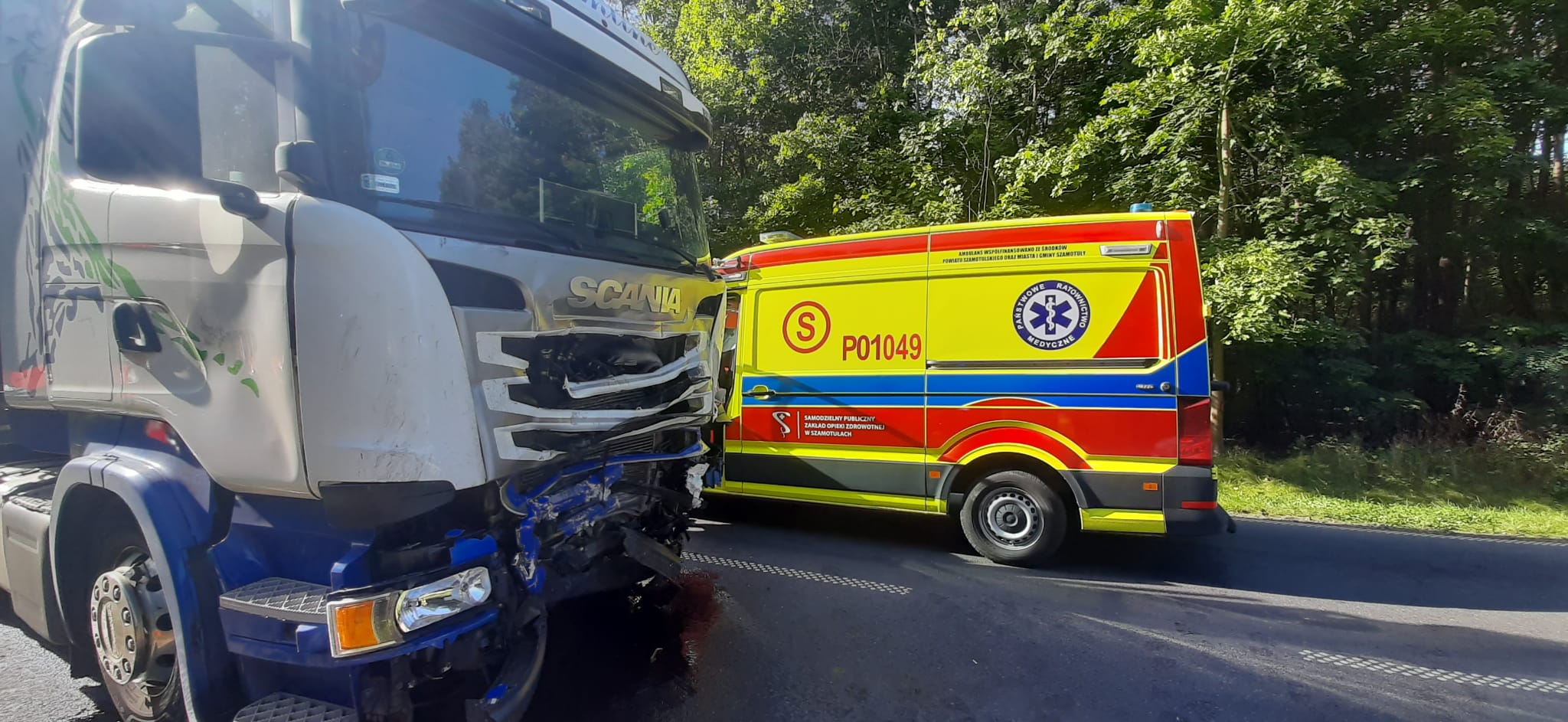 W piątek, 1 października o godz. 10.23 do dyżurnego Stanowiska Kierowania Państwowej Straży Pożarnej w Szamotułach wpłynęło zgłoszenie z Centrum Powiadamiania Ratunkowego, które informowało o wypadku drogowym z udziałem samochodu ciężarowego i osobowego oraz jednej osobie poszkodowanej uwięzionej w pojeździe na drodze wojewódzkiej nr 185 w miejscowości Słopanowo gm. Obrzycko