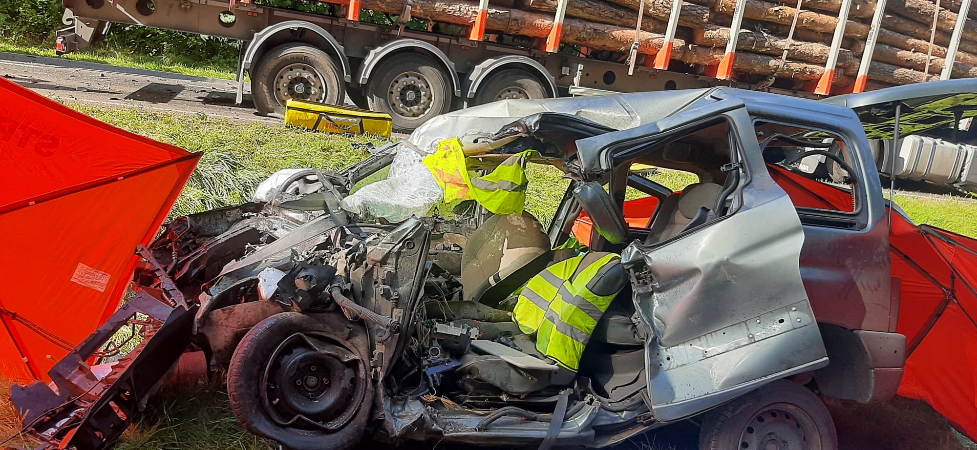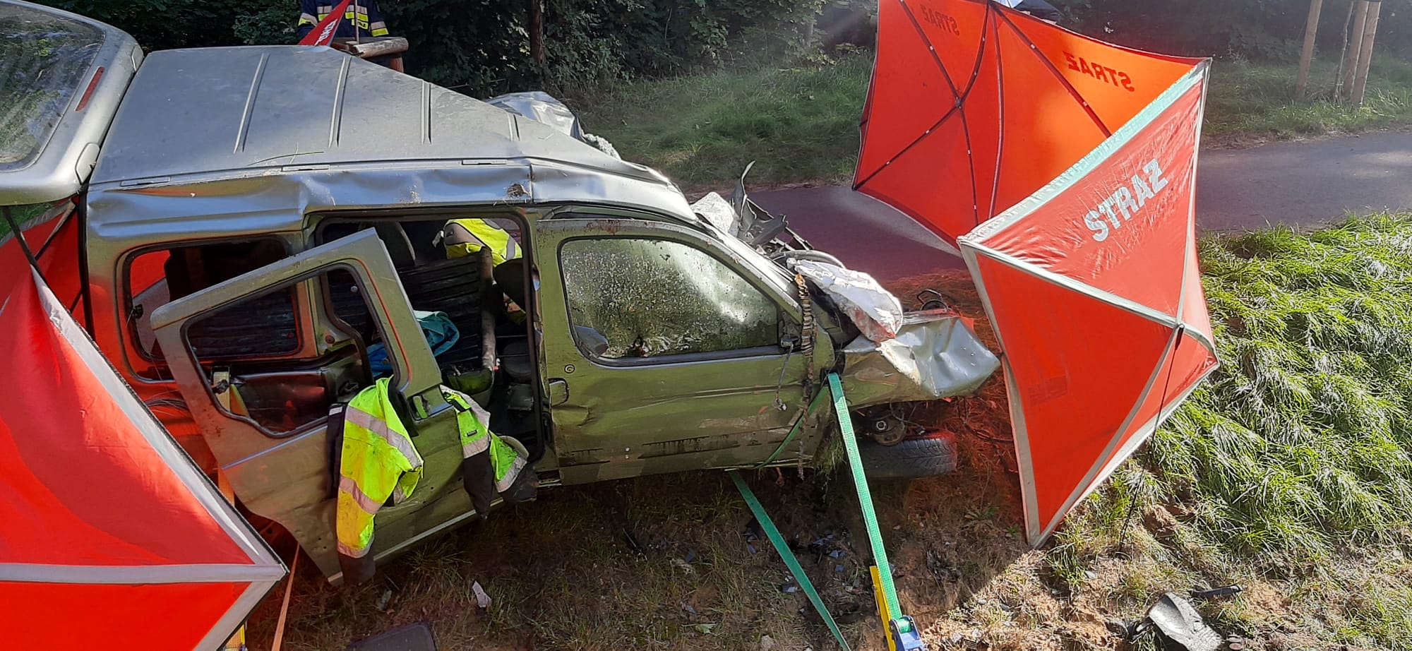 Niestety przybyły na miejscu zdarzenia lekarz ze względu na liczne obrażenia ciała stwierdził zgon kierującego samochodem osobowym.