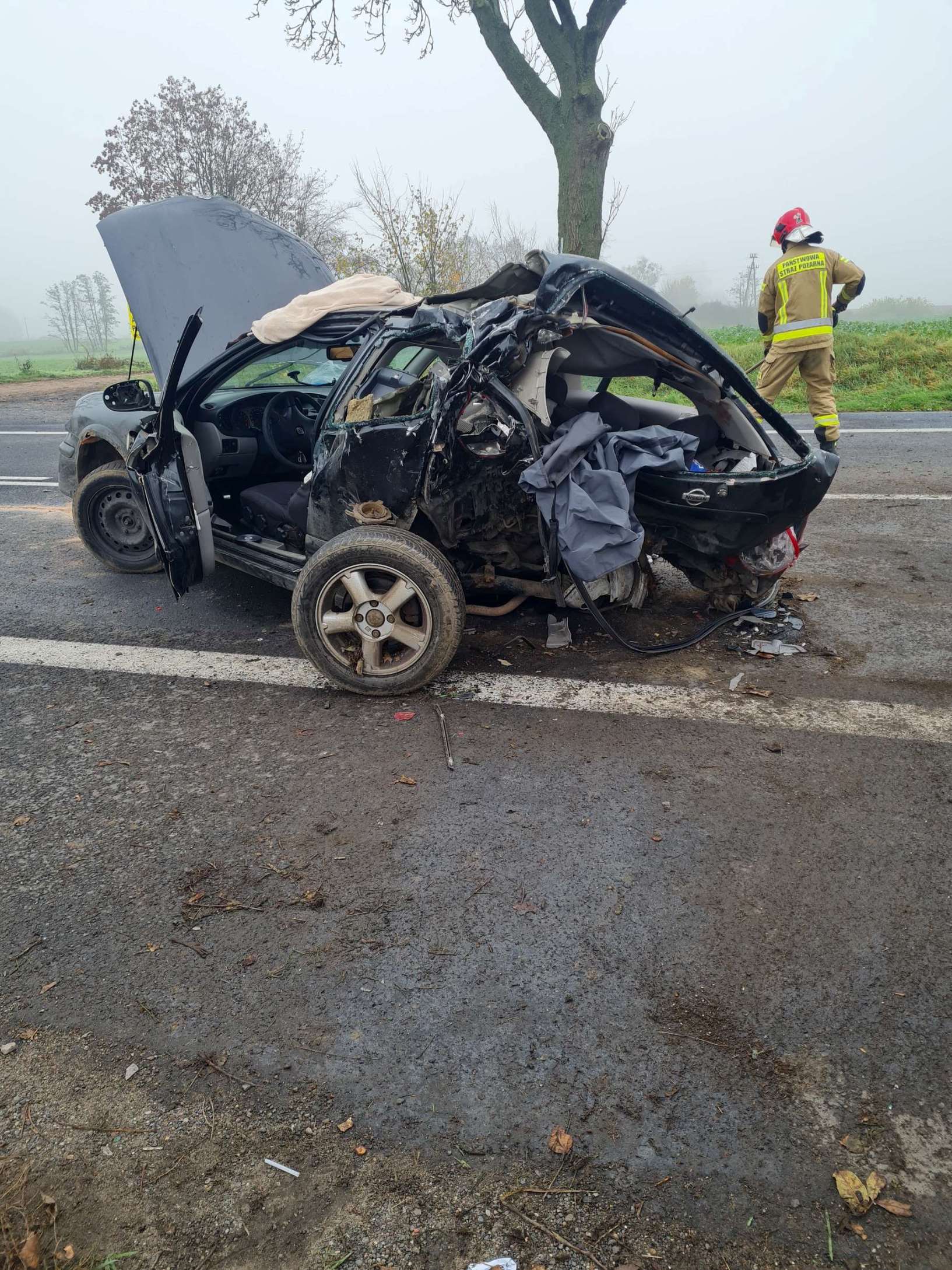 We wtorek, 1 listopada o godz. 7.12 do dyżurnego Stanowiska Kierowania Państwowej Straży Pożarnej w Szamotułach wpłynęło zgłoszenie z Centrum Powiadamiania Ratunkowego, które informowało o uderzeniu samochodu osobowego w drzewo oraz dwóch osobach poszkodowanych uwięzionych wewnątrz pojazdu na drodze krajowej nr 92 w miejscowości Sękowo gm. Duszniki.