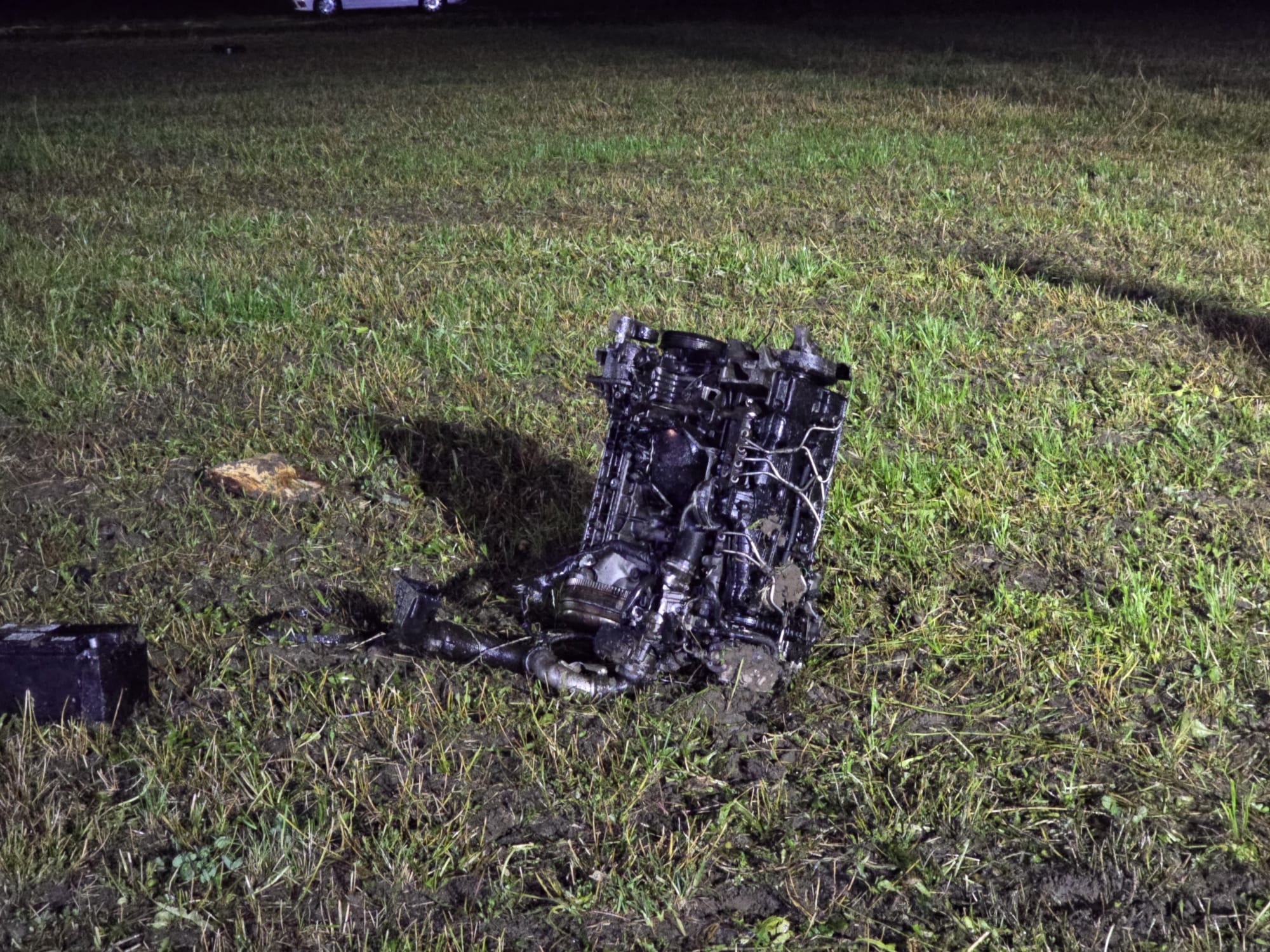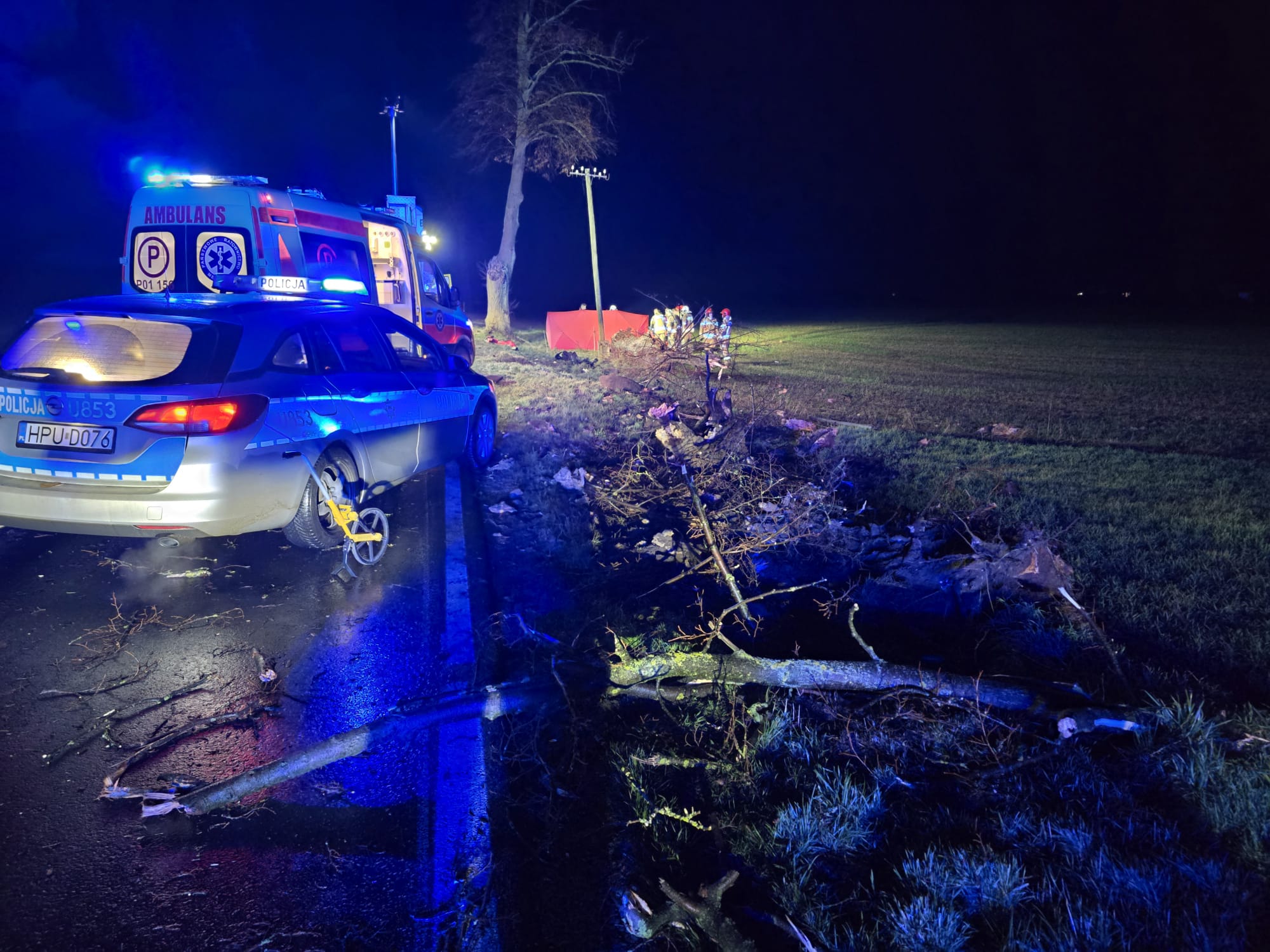 Po dojeździe na miejscu zdarzenia strażacy zastali samochód osobowy, który po uderzeniu w drzewo dachował i znajdował się w pozycji na dachu na pobliskim polu. Kierujący znajdował się wewnątrz pojazdu - brak funkcji życiowych.