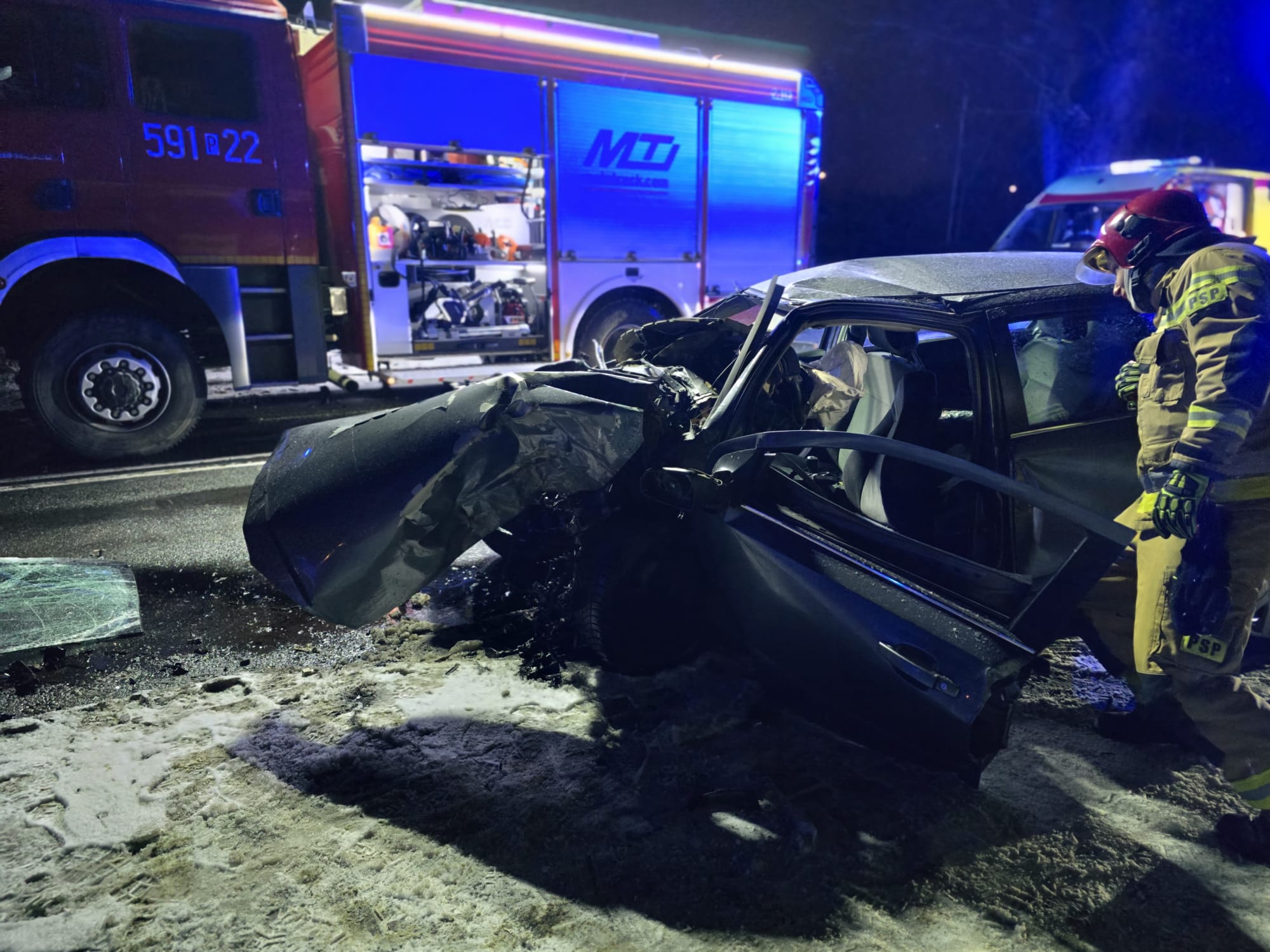 W niedzielę, 8 lutego 2026 roku o godz. 22.40 do dyżurnego Stanowiska Kierowania Państwowej Straży Pożarnej w Szamotułach wpłynęło zgłoszenie z Centrum Powiadamiania Ratunkowego, które informowało o poważnym wypadku drogowym na drodze wojewódzkiej nr 184 oraz jednej osobie poszkodowanej uwięzionej wewnątrz pojazdu.