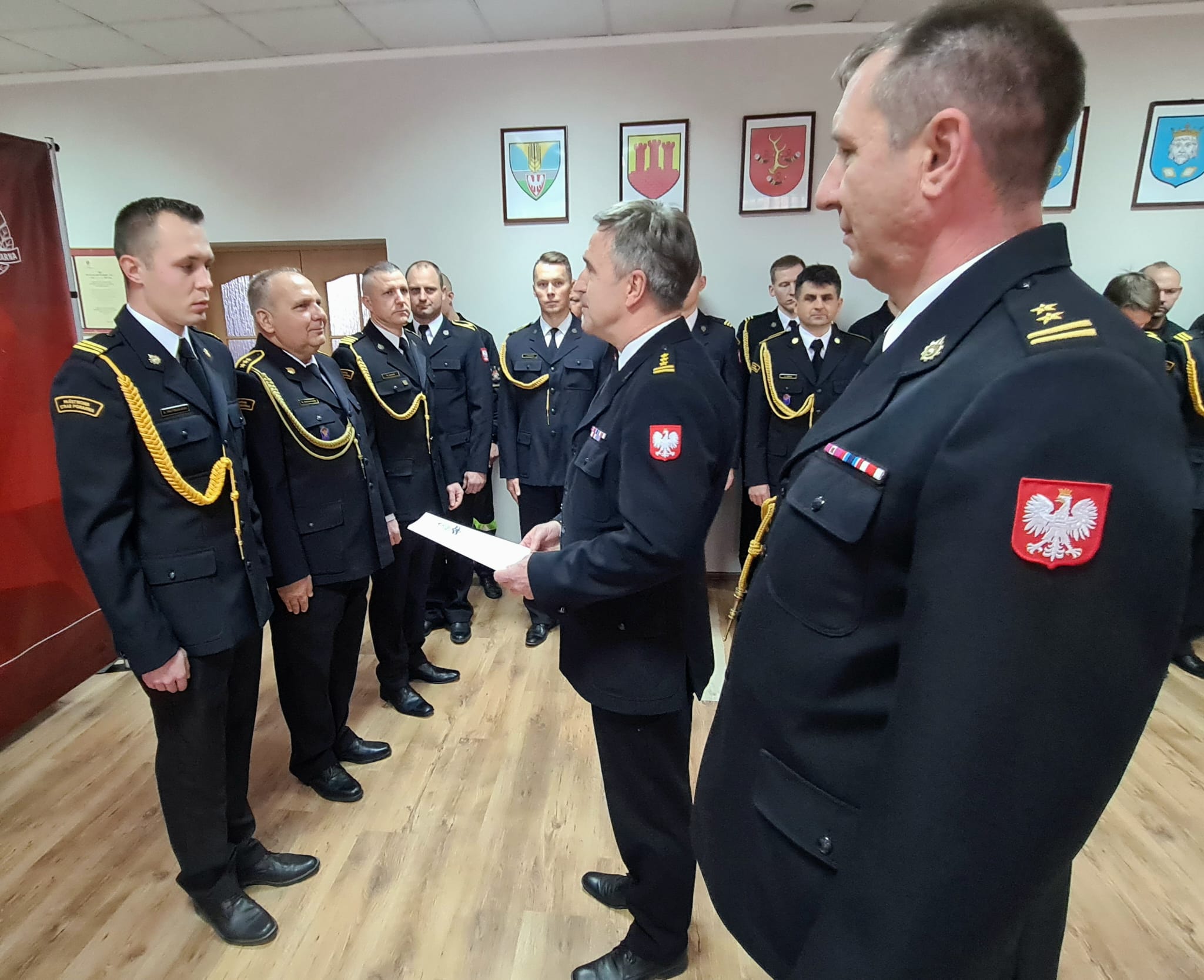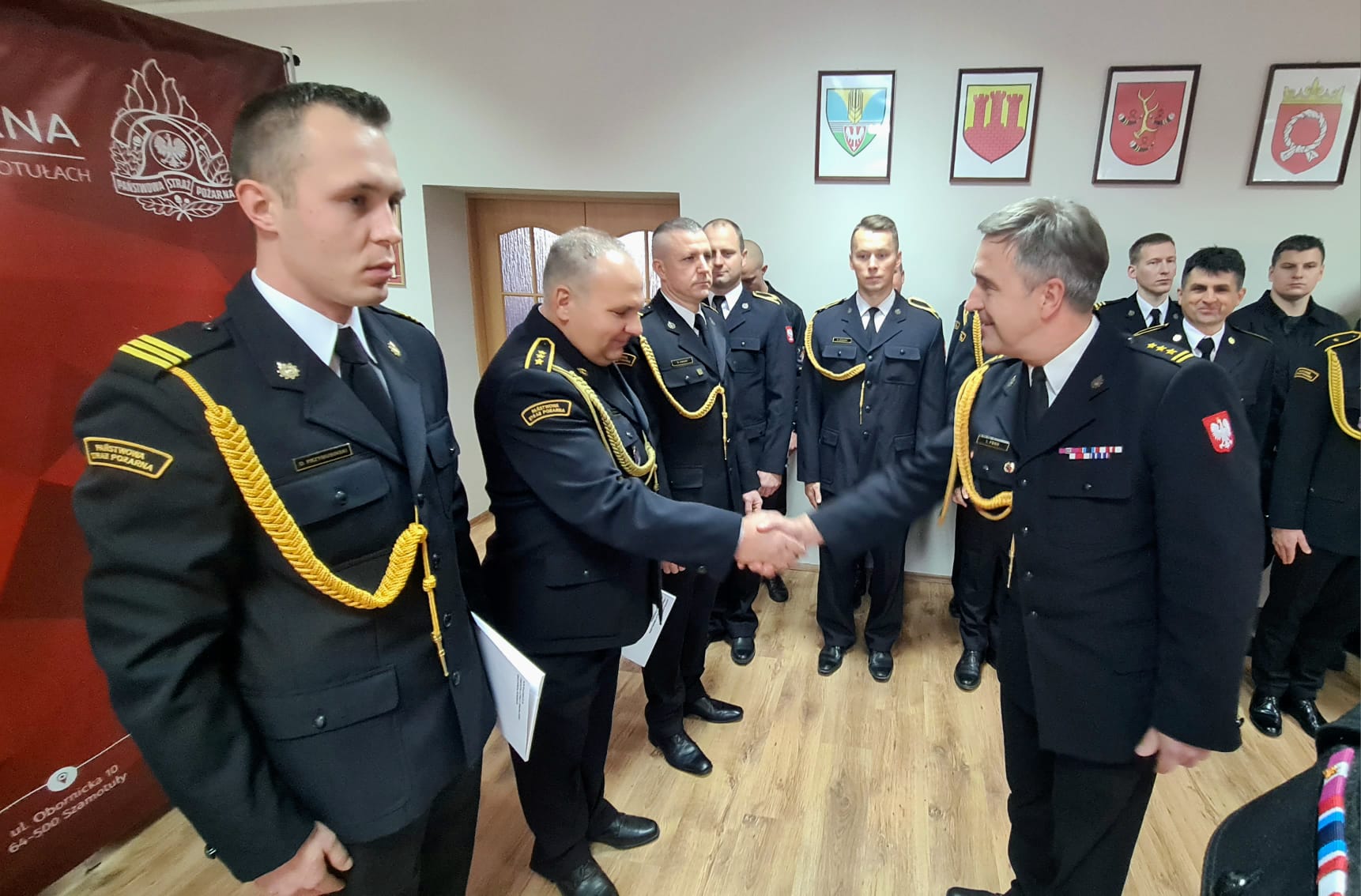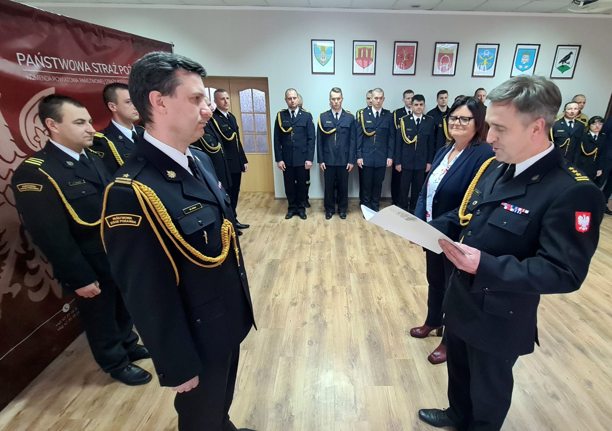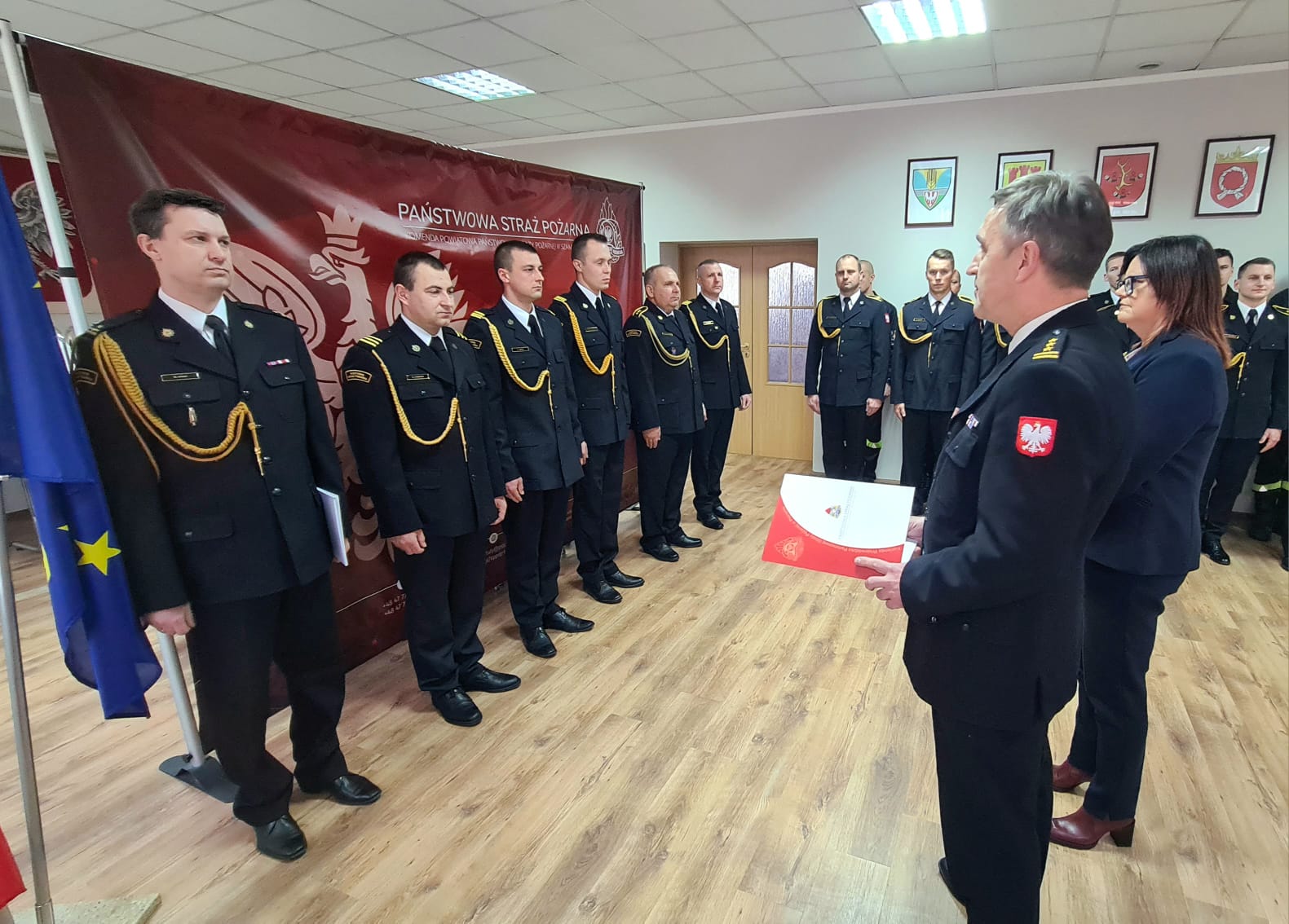 Wręczenia decyzji o awansach na wyższy stopnie służbowe oraz decyzji nagrodowych dokonali: Starosta Powiatu Szamotulskiego Pani Beta Hanyżak, Komendant Powiatowy Państwowej Straży Pożarnej w Szamotułach st. bryg. Ireneusz Pers oraz Zastępca Komendanta Powiatowego bryg. Arkadiusz Rakowski.