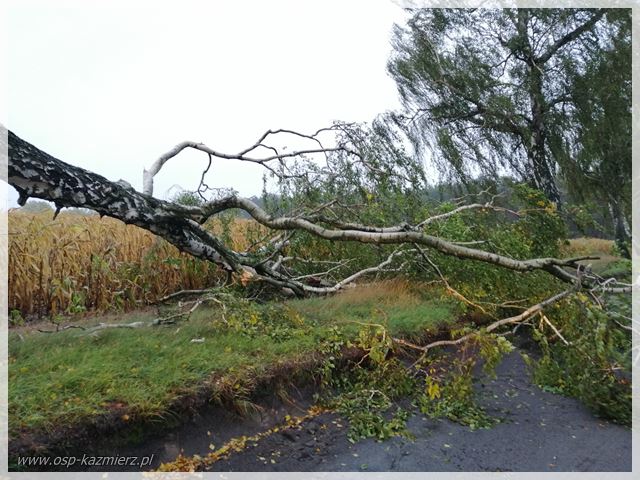 We wtorek w godzinach wieczornych nastąpiło załamanie pogody, zaczął padać ulewny deszcz oraz nastąpiły silne porywy wiatru. Na skutki nie trzeba było długo czekać. Około godziny 22.15 do Dyżurnego Stanowiska Kierowania Państwowej Straży Pożarnej w Szamotułach zaczęły napływać pierwsze zgłoszenia o pękniętych konarach drzew i poprzewracanych drzewach, które blokowały przejazd na drogach gminnych, powiatowych, wojewódzkich i drodze krajowej.
