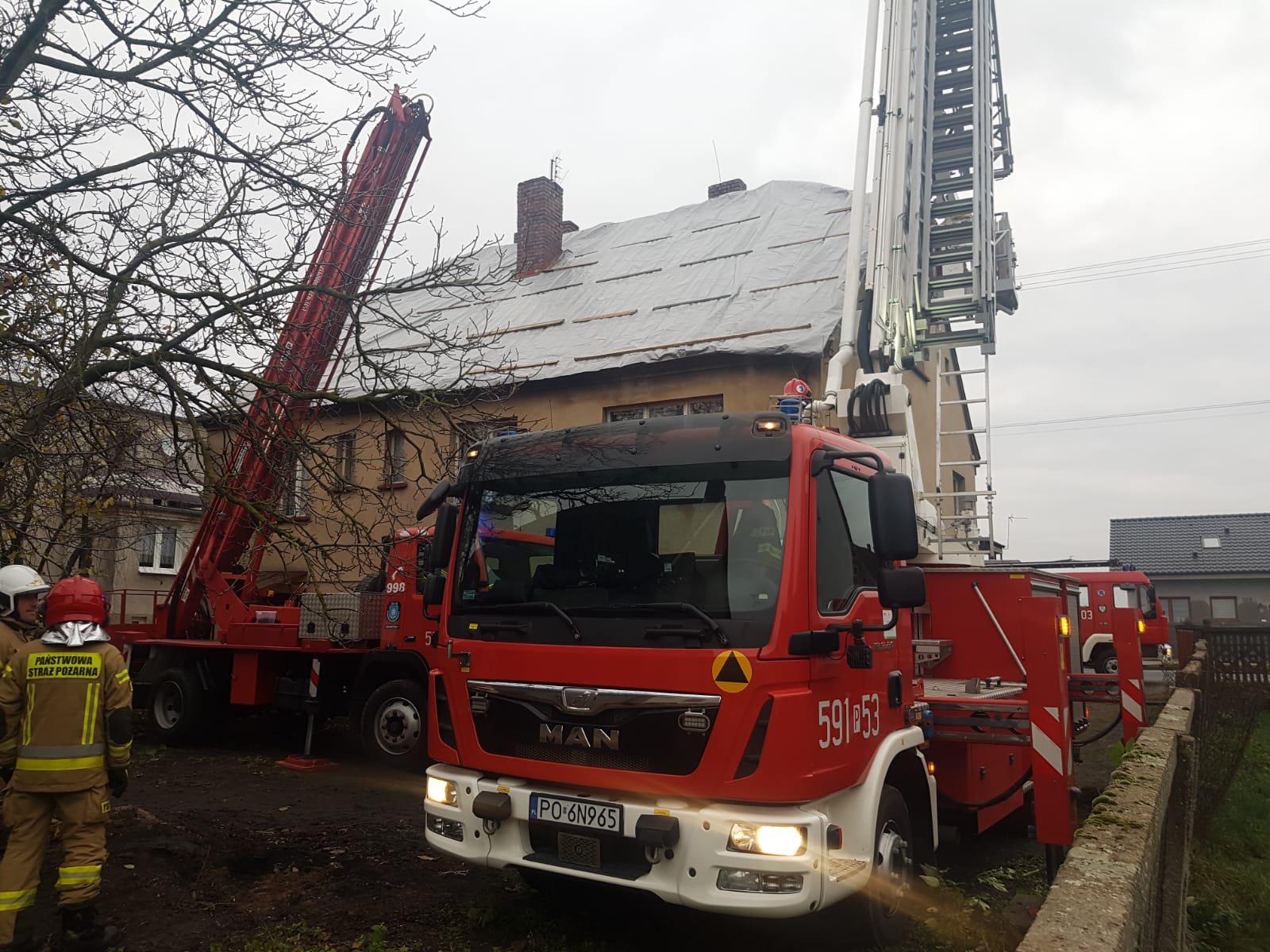 W piątek, 5 listopada o godz. 11.34 do dyżurnego Stanowiska Kierowania Państwowej Straży Pożarnej w Szamotułach wpłynęło zgłoszenie z Centrum Powiadamiania Ratunkowego, które informowało o zerwanym dachu budynku mieszkalnego w miejscowości Duszniki na ul. Jana Pawła.