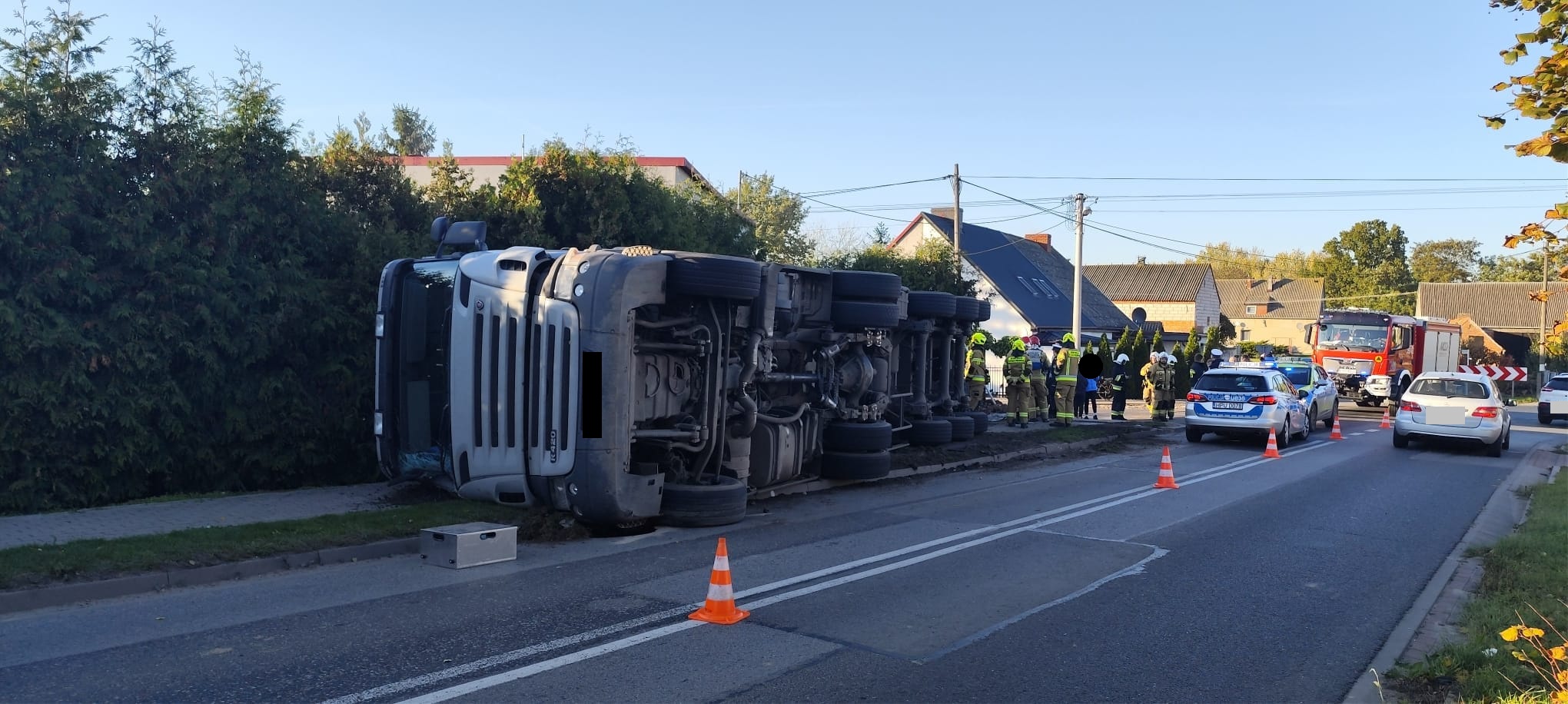 W Sękowie przewrócił się pojazd ciężarowy przewożący buraki cukrowe