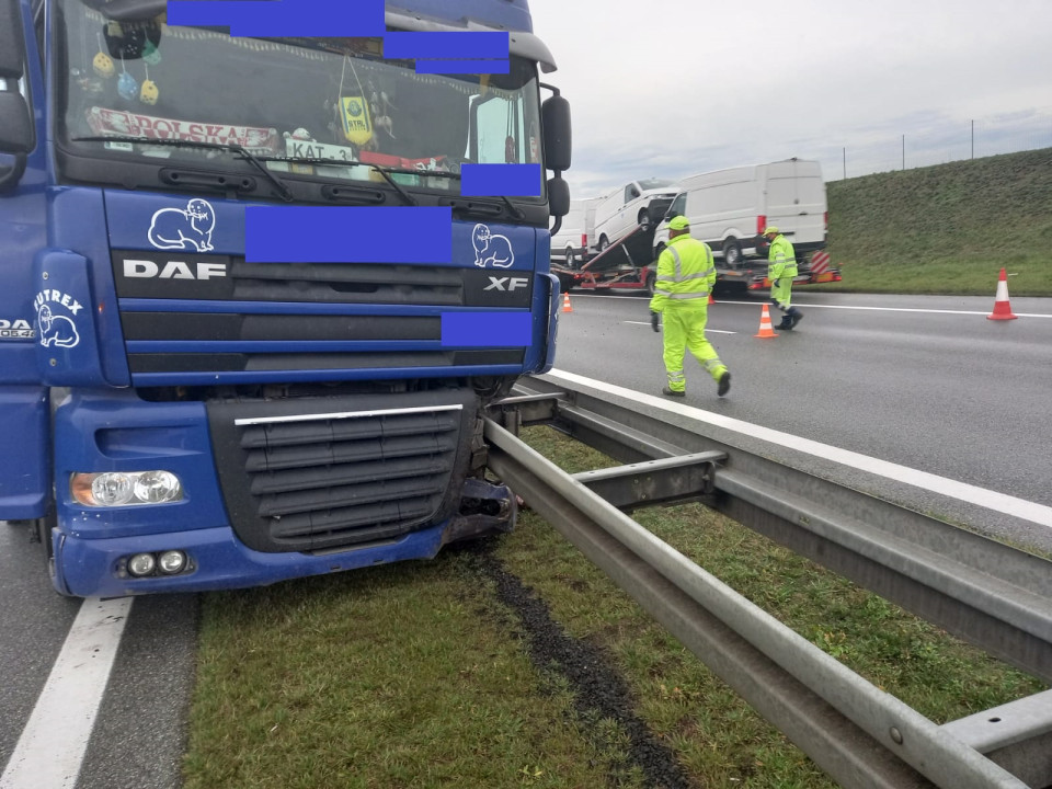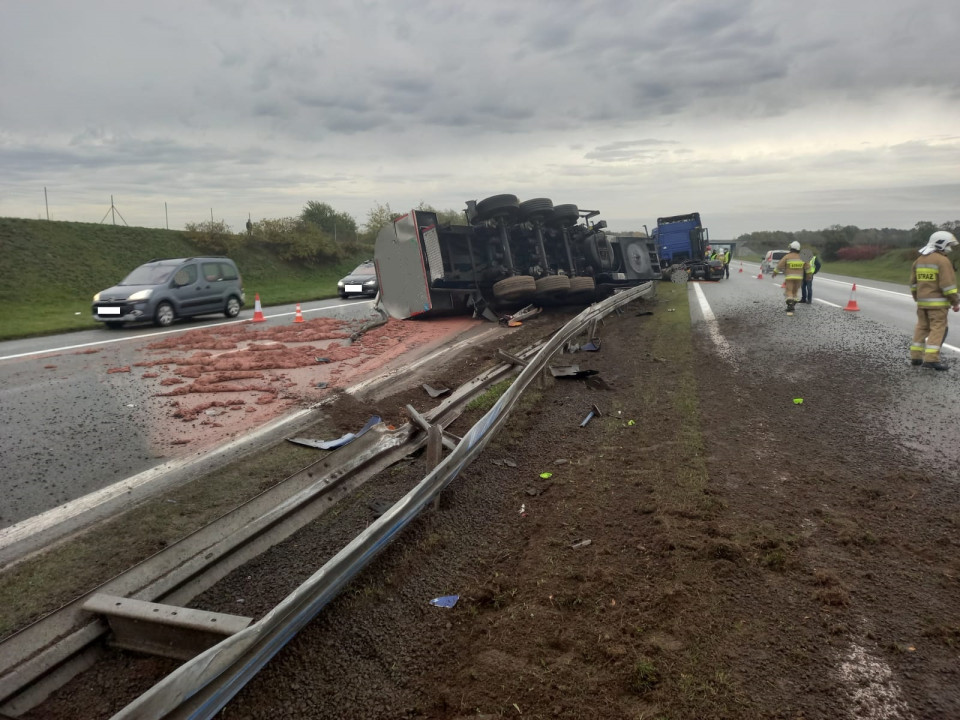 W poniedziałek, 2 listopada o godz. 7.32 do dyżurnego Stanowiska Kierowania Państwowej Straży Pożarnej w Szamotułach wpłynęło zgłoszenie z Centrum Powiadamiania Ratunkowego, które informowało o przewróconej naczepie samochodu ciężarowego, która uderzyła w bariery energochłonne na 135km autostrady nr 2 w kierunku Warszawy na wysokości miejscowości Wilkowo.