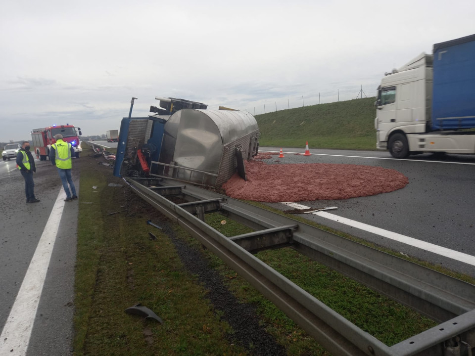 WILKOWO – PRZEWRÓCONA CYSTERNA NA AUTOSTRADZIE