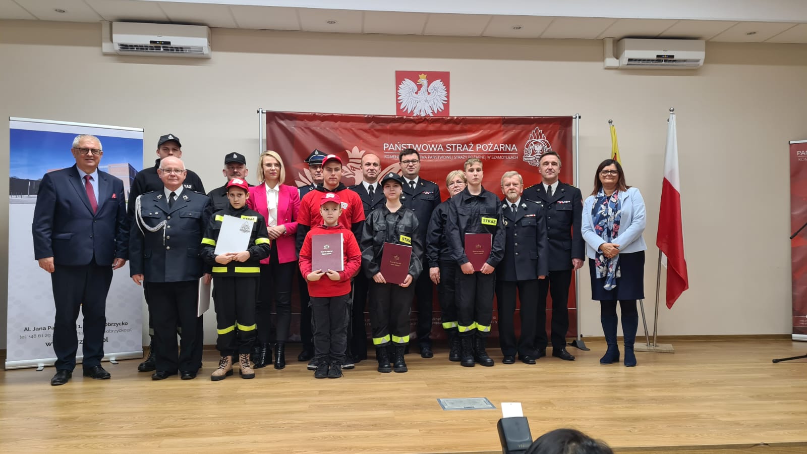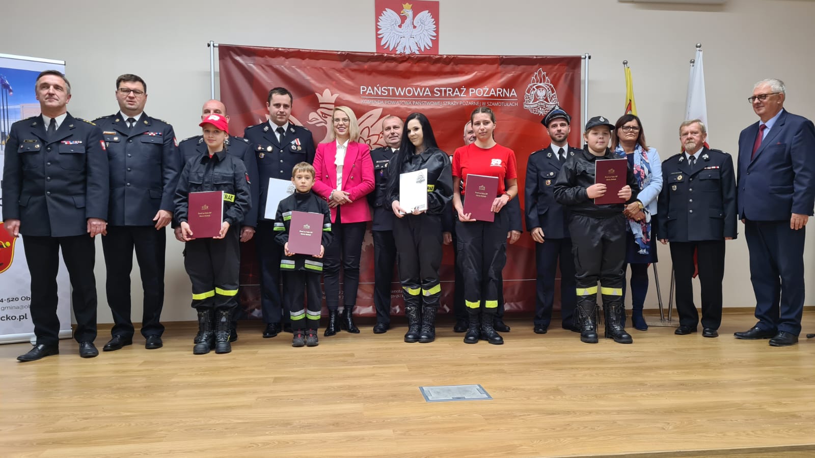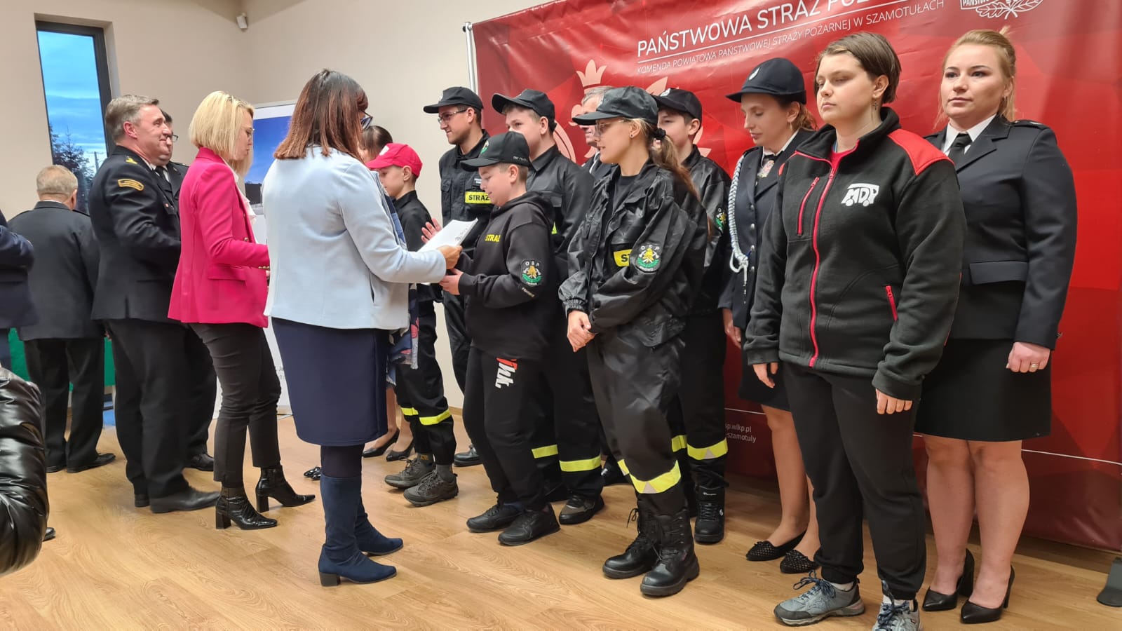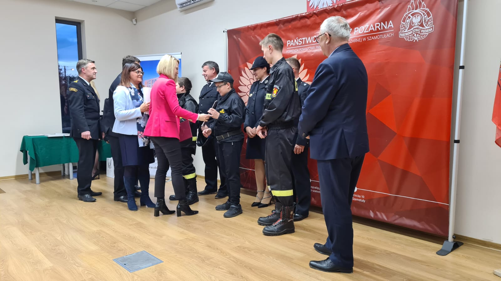WRĘCZENIE PROMES NA DOTACJĘ MŁODZIEŻOWYCH DRUŻYN POŻARNICZYCH ORAZ DECYZJI O PRZYZNANIU ŚWIADCZENIA RATOWNICZEGO DLA ZASŁUŻONYCH STRAŻAKÓW POWIATU SZAMOTULSKIEGO